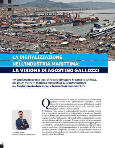 LA DIGITALIZZAZIONE NELL'INDUSTRIA MARITTIMA: LA VISIONE DI AGOSTINO GALLOZZI “Digitalizzazione non vuol dire solo eliminare la carta in azienda, ma poter fruire in maniera tempestiva delle informazioni sul trasferimento delle merci e transazioni economiche”.