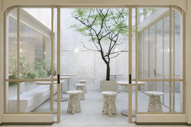 “Indoor picnic in a inner courtyard” yang terlihat dari design area tengah dengan menggunakan lantai rumput sintetis. Setelah pengunjung membeli makanan, pengunjung dapat duduk pada area tengah yang membuat pengunjung merasa seperti berada ditaman untuk piknik