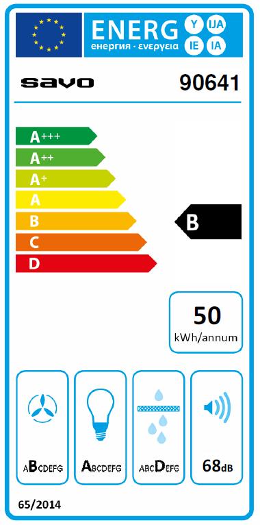 Liesituulettimen energiamerkki EU:n ekosuunnitteludirektiivin (65/2014) mukaisesti: