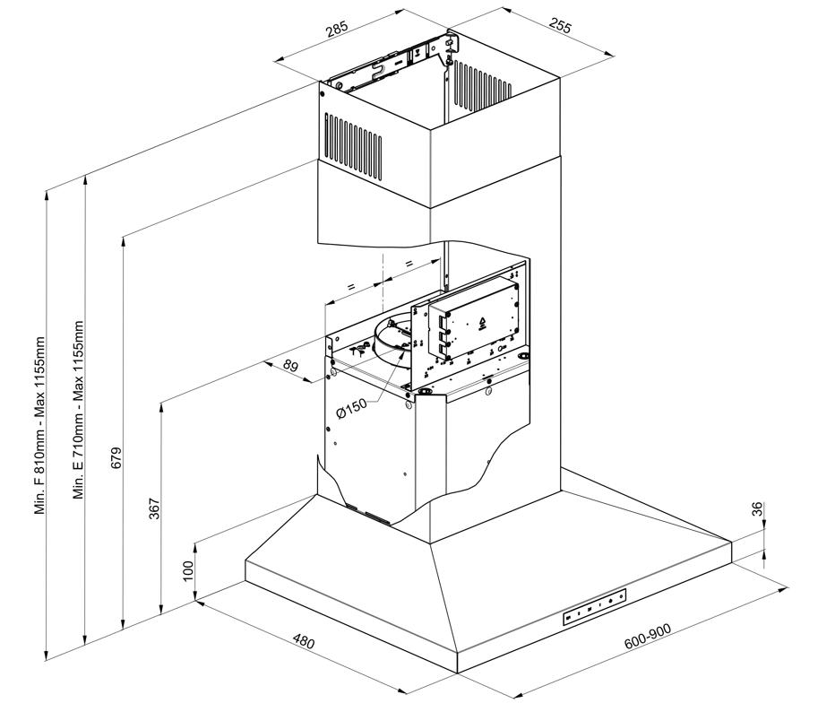 • 600/900 x 480 x 710/810 - 1155/1155 mm (l x s x k)