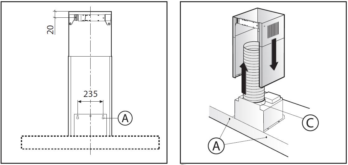 • Asenna metallinen hormiputki liesituulettimen lähtöporttiin.