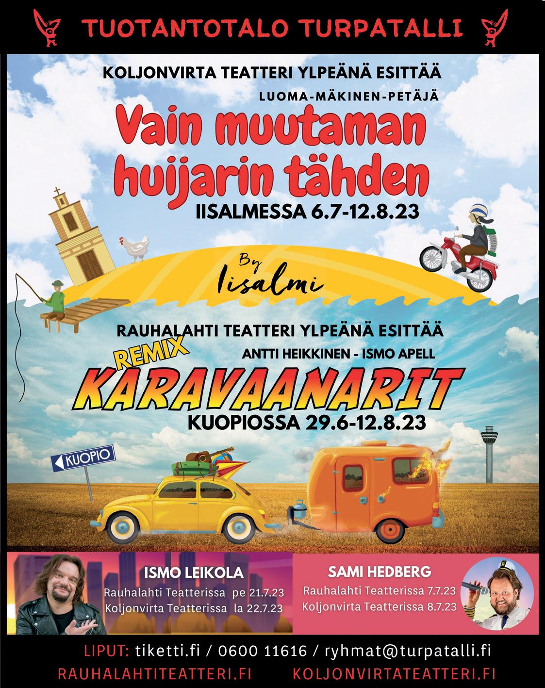 Oppaan tiedot on koostettu kuntien, yritysten ja matkailupalveluiden tarjoajien kanssa yhteistyössä ja ne sisältävät mainoksia ja tuotesijoittelua. Emme vastaa mahdollisista virhetiedoista, muutoksista tai niiden seurauksista. Emme vastaa taloudellisesti niistä vahingoista, jotka aiheutuvat oppaassa mahdollisesti julkaistuista paino- tai muista virheistä. Mahdollisista huomioista voitte laittaa palautetta info@savonseutu.fi. Toimitus ei vastaa tilaamatta lähetetystä aineistosta.