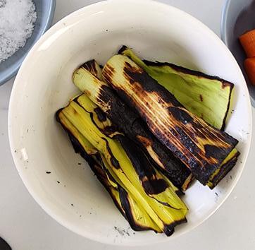 When they’re young, leeks look like hefty scallions, but as they mature, they can become very large indeed. Young leeks can be eaten raw while the flavour of mature leeks is delicate, sweet and mellow when cooked, imparting a pleasant oniony flavour without the bite of onions and garlic. Usually, only the white and very light green portions are used, the dark green tops are fibrous and strong tasting, best kept for stock. Keep leeks in the fridge untrimmed and unwashed.