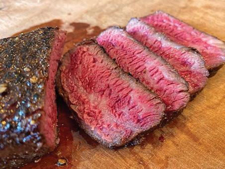 With two restaurants, a catering business and public engagement through the food truck, Gladue was looking for ways to have a broader impact, saying he wanted to make Indigenous food a bigger part of the conversation about Canada’s national cuisine. One of his products, pânsâwân, enabled him to do that. Pânsâwân, or “thin-sliced meat” in English, being one of the first foods of North America, was traditionally prepared from the lean meat of large game like bison, elk, caribou, or moose. The meat was cut in thin slices and dried over smouldering coals until it was naturally preserved. Pânsâwân is made into the betterknown “pimîhkân” (pemmican in English) by pounding the dried pânsâwân meat into a powder using stones and combining it with rendered