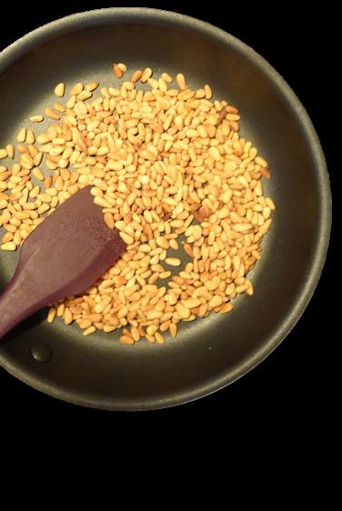 To toast nuts, place in a frying pan over medium heat, and add a small drizzle of oil – about 2.5 ml (½ tsp). Stirring constantly, cook until lightly browned and fragrant, approximately 10-15 minutes. Remove from heat and transfer to a heatproof bowl to cool. Use desired amount for pesto, reserve any remaining nuts for another use.