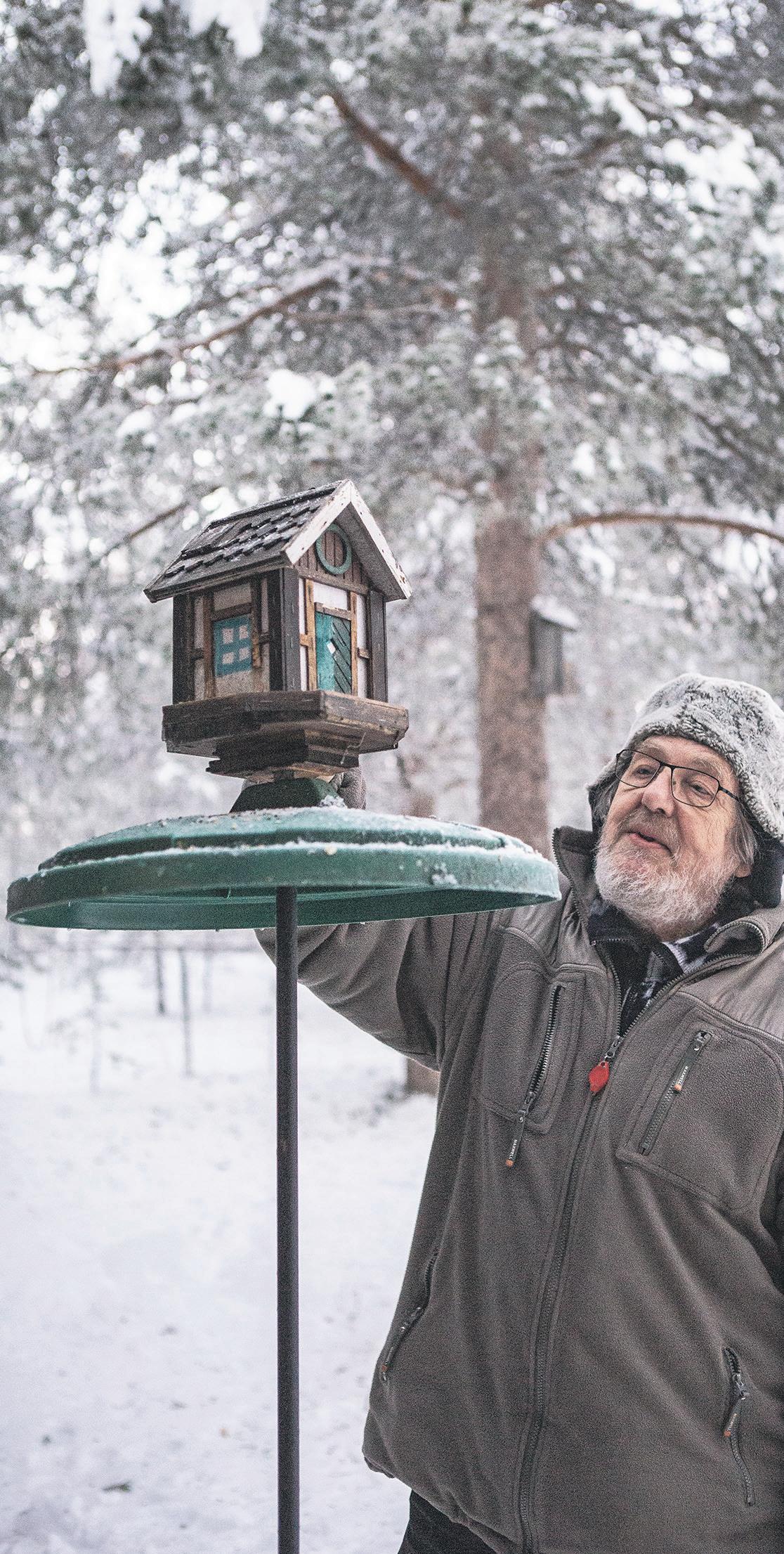 Talven paukkupakkaset eivät hidasta kuvaajaa. ”Näpithän tässä hommassa jäätyvät aina, sille ei voi mi tään. Kannattaa koskea mahdollisimman vähän metalliin. Siksi olen päällystänyt kameran jalustan vaahtomuovilla”, Korhonen vinkkaa.