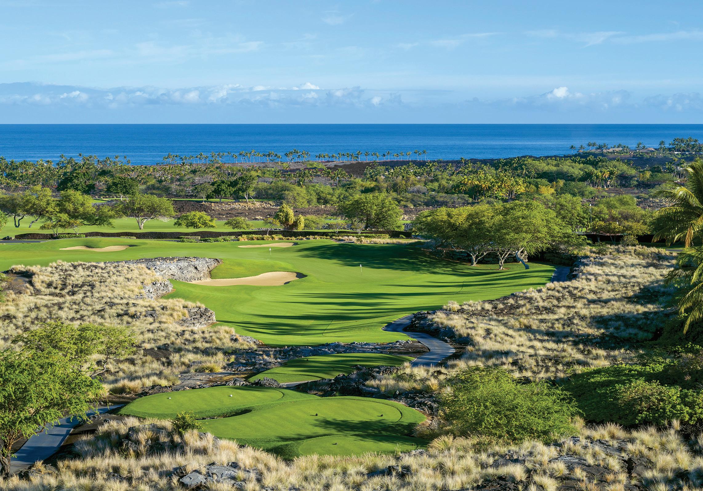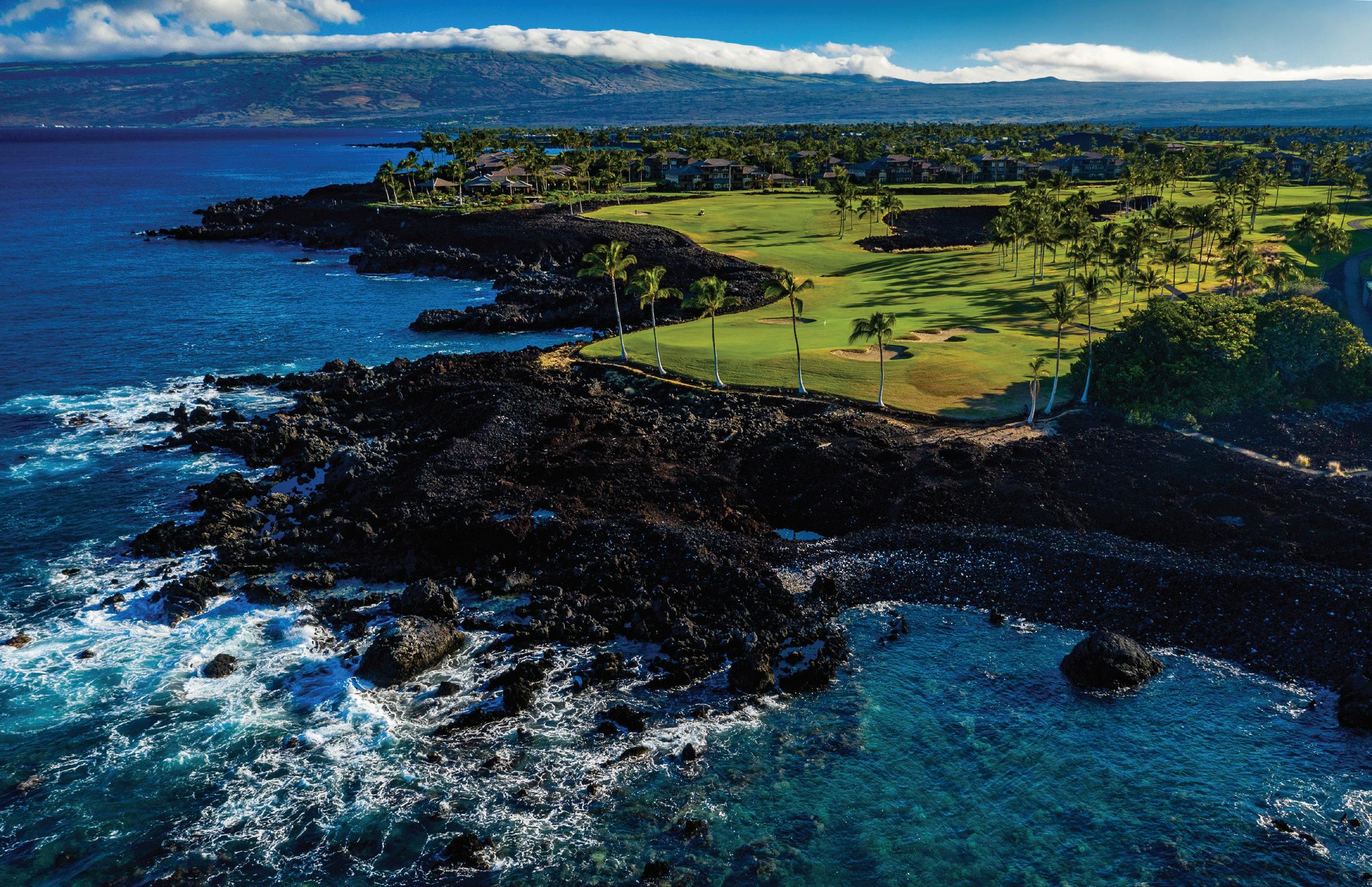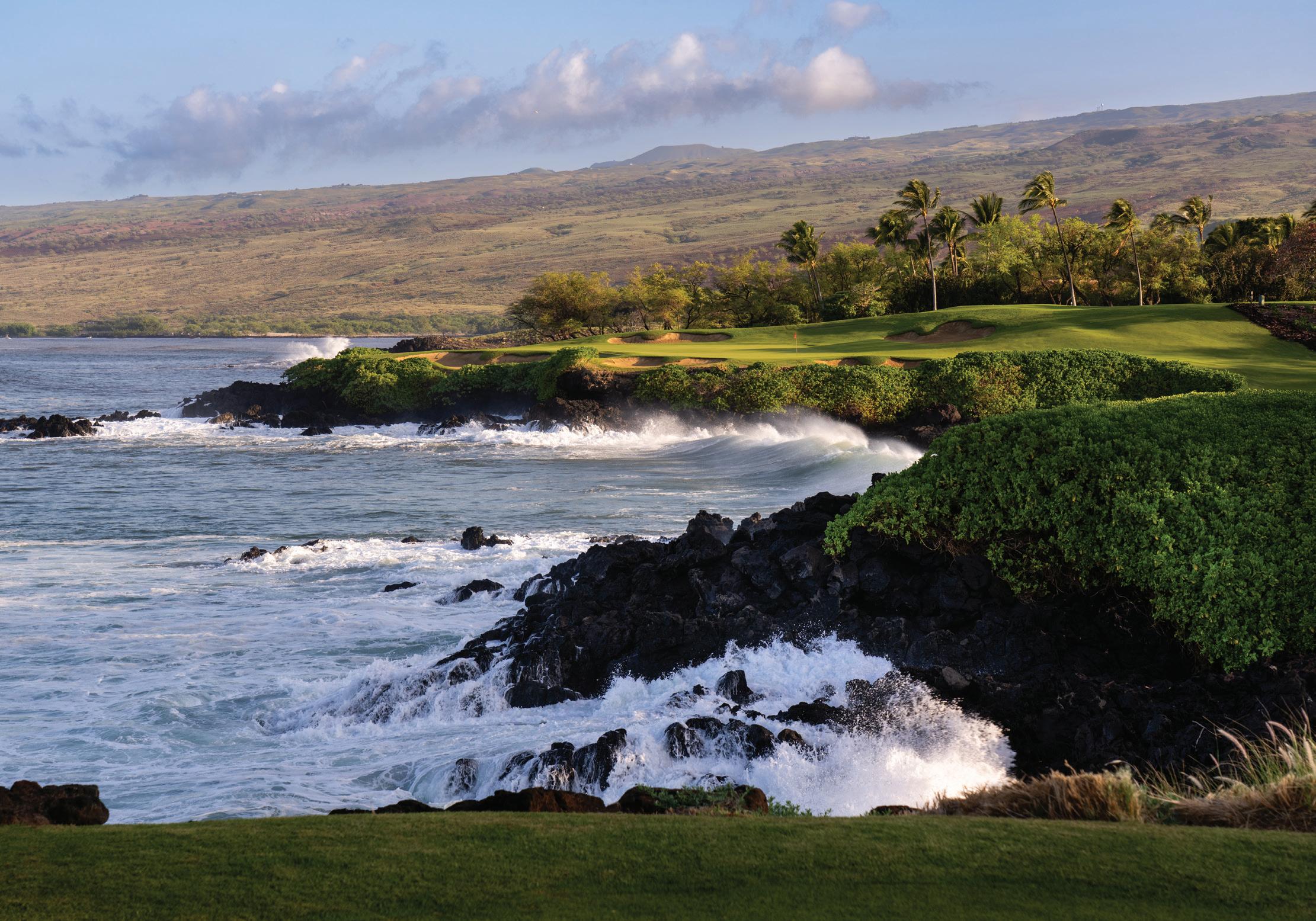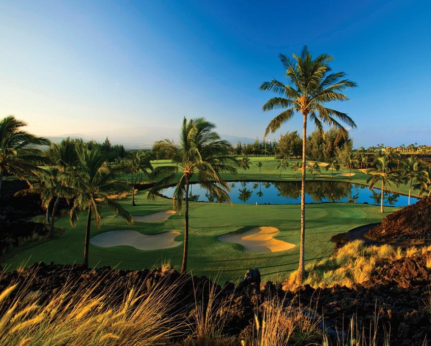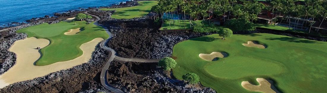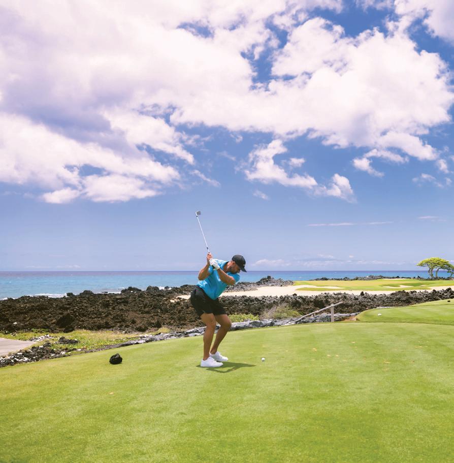 Crafted with sensitivity to its unique environment, this 18-hole, Jack Nicklaus-signature, championship course winds over 7,100 yards, beginning in a lush oasis, flowing across bright green fairways contoured against black lava, then returning to the ocean for three breathtaking final holes. The Hualālai Golf Hale is the ultimate destination for golf enthusiasts of all ages to enjoy exclusive programming and improve their golf game with state-ofthe-art technology and expert instruction. This 3,000 squarefoot (278 square-metre) includes an indoor Topgolf Swing Suite, outdoor hitting bays featuring TrackMan launch monitors.