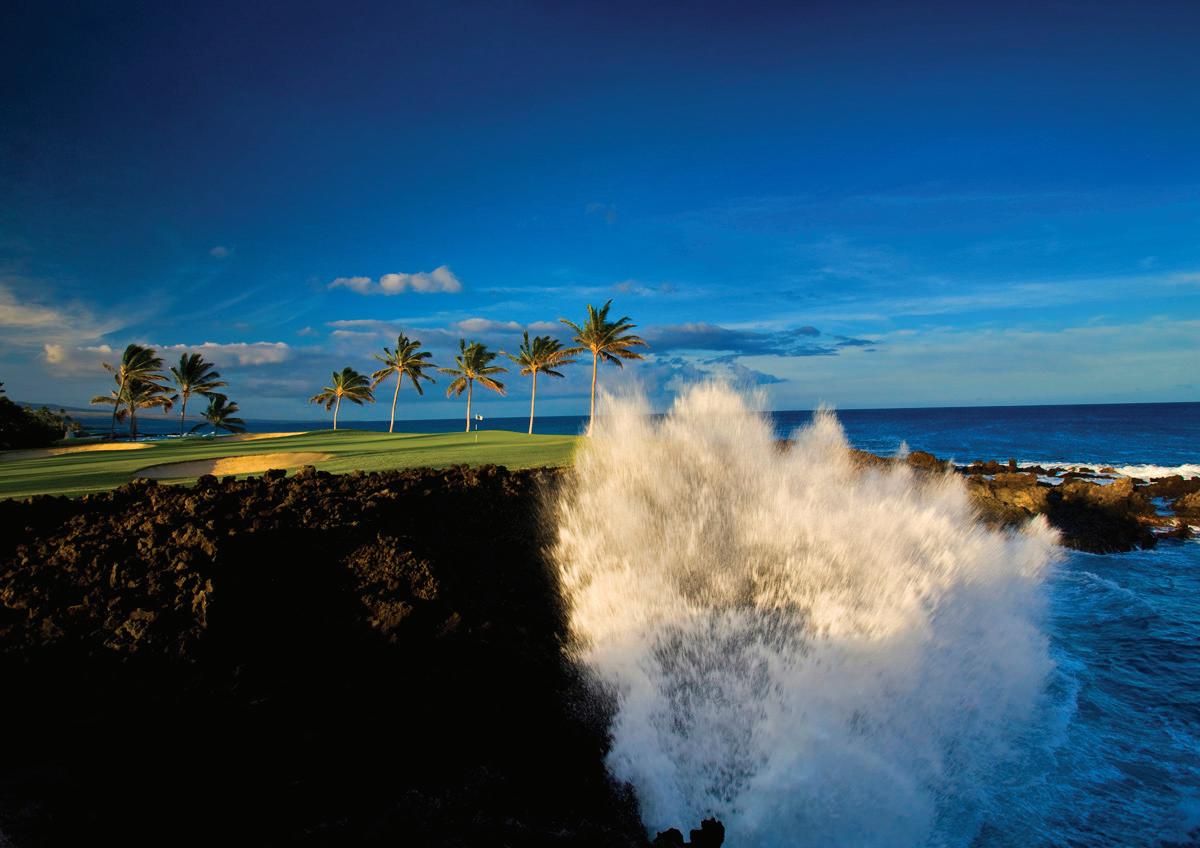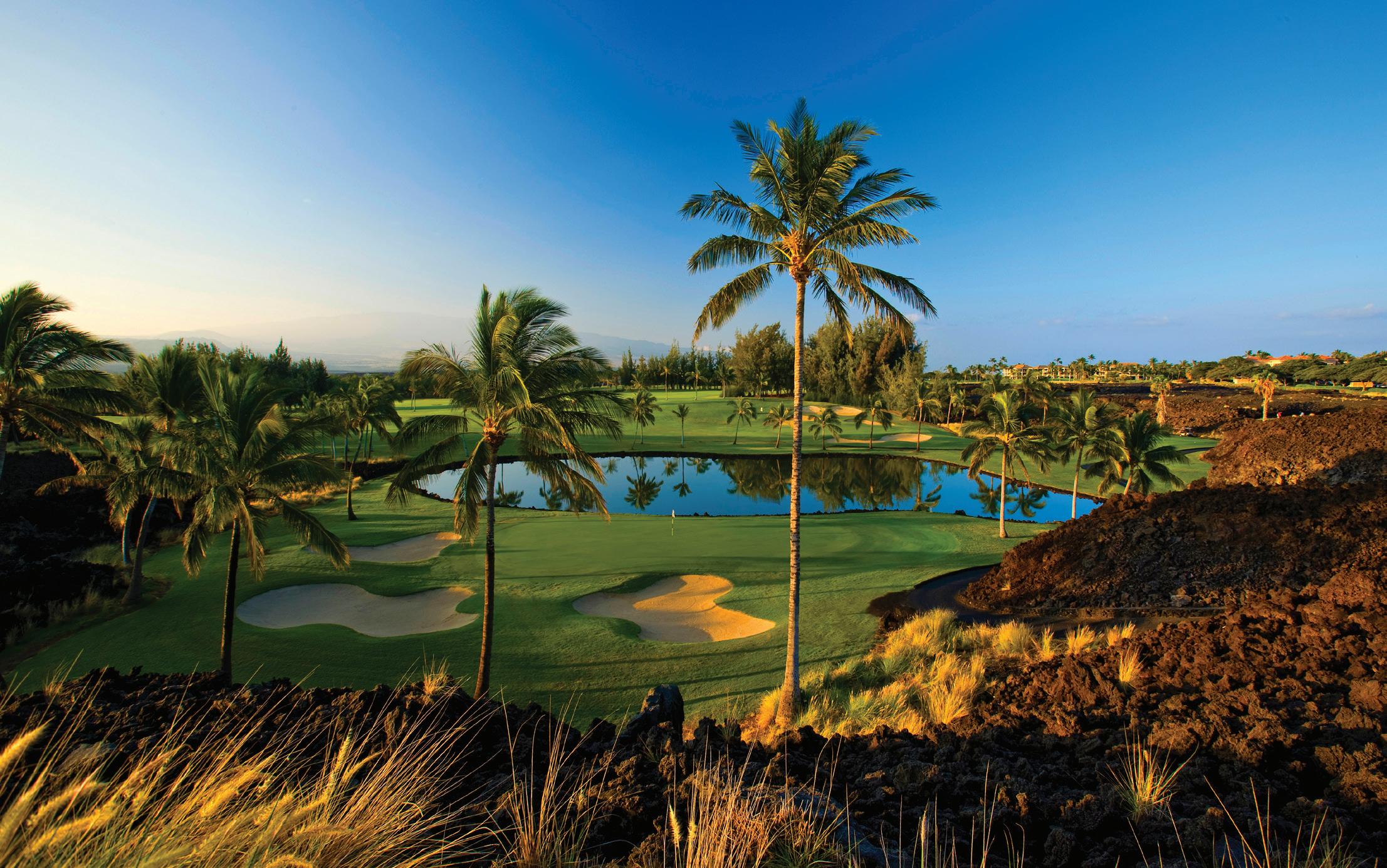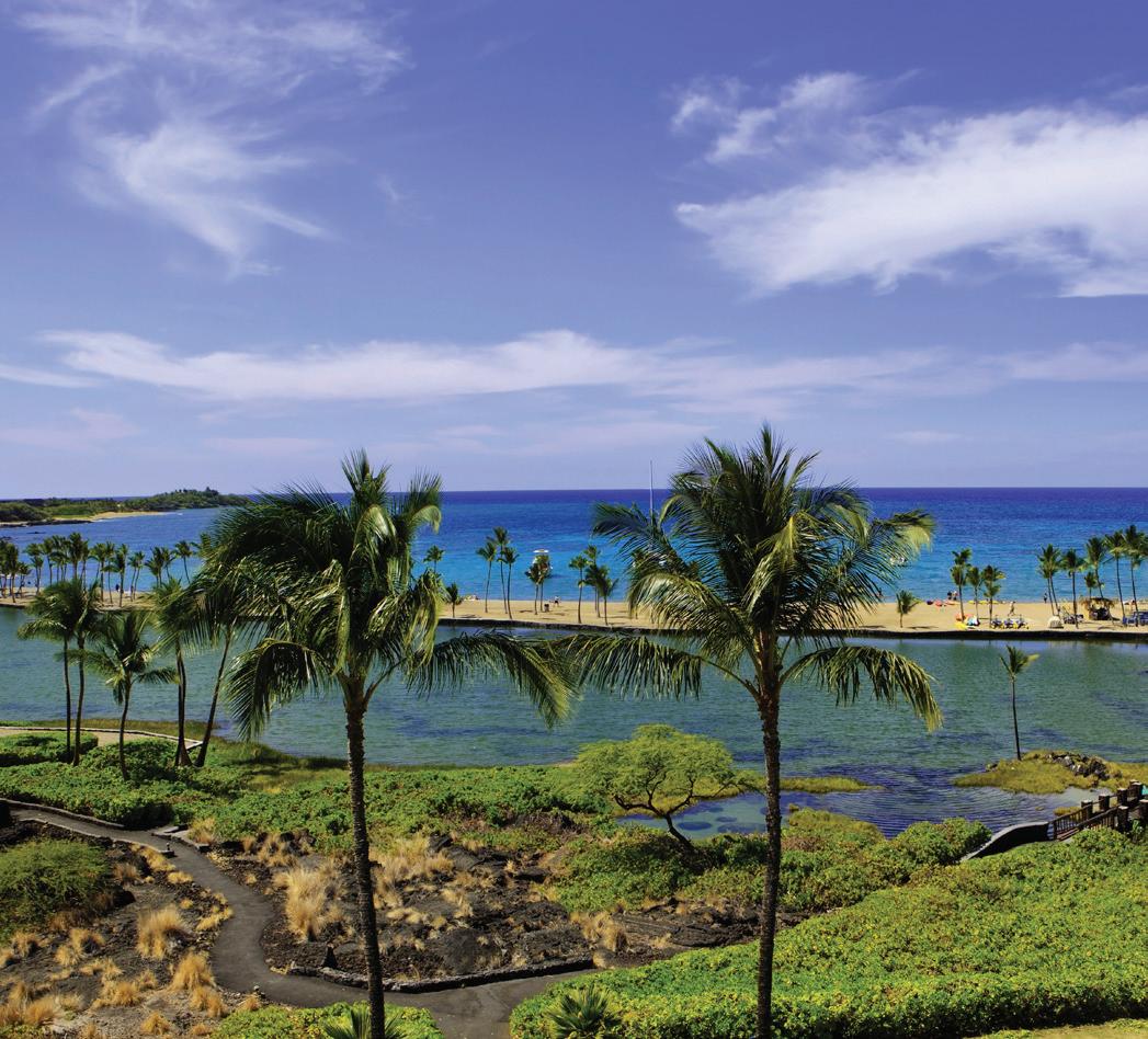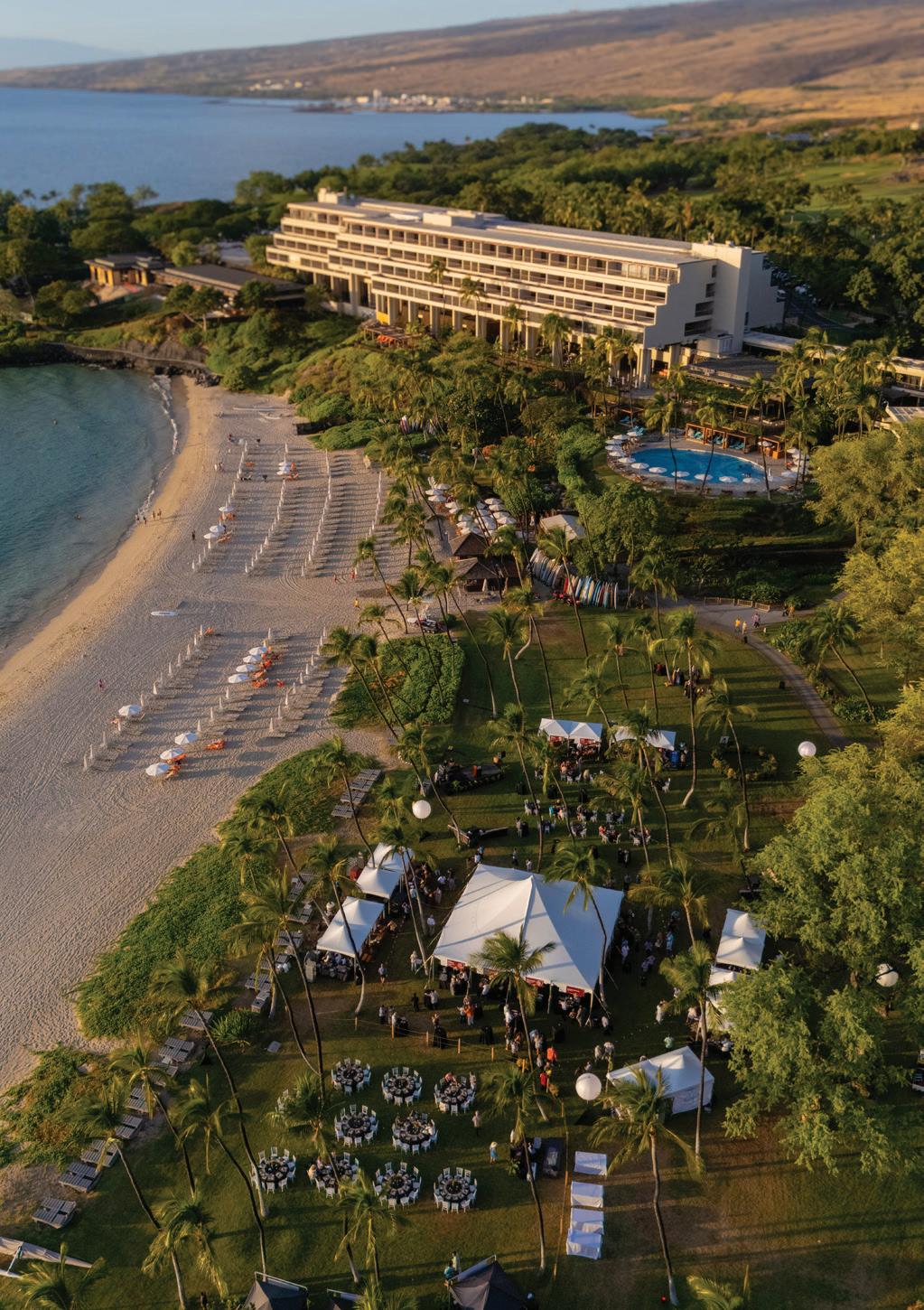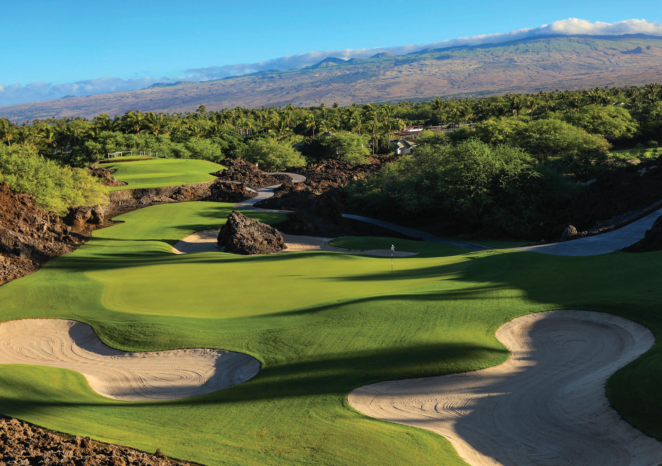 Crafted with sensitivity to its unique environment, this 18-hole, Jack Nicklaus-signature, championship course winds over 7,100 yards, beginning in a lush oasis, flowing across bright green fairways contoured against black lava, then returning to the ocean for three breathtaking final holes. The Hualālai Golf Hale is the ultimate destination for golf enthusiasts of all ages to enjoy exclusive programming and improve their golf game with state-ofthe-art technology and expert instruction. This 3,000 squarefoot (278 square-metre) includes an indoor Topgolf Swing Suite, outdoor hitting bays featuring TrackMan launch monitors.