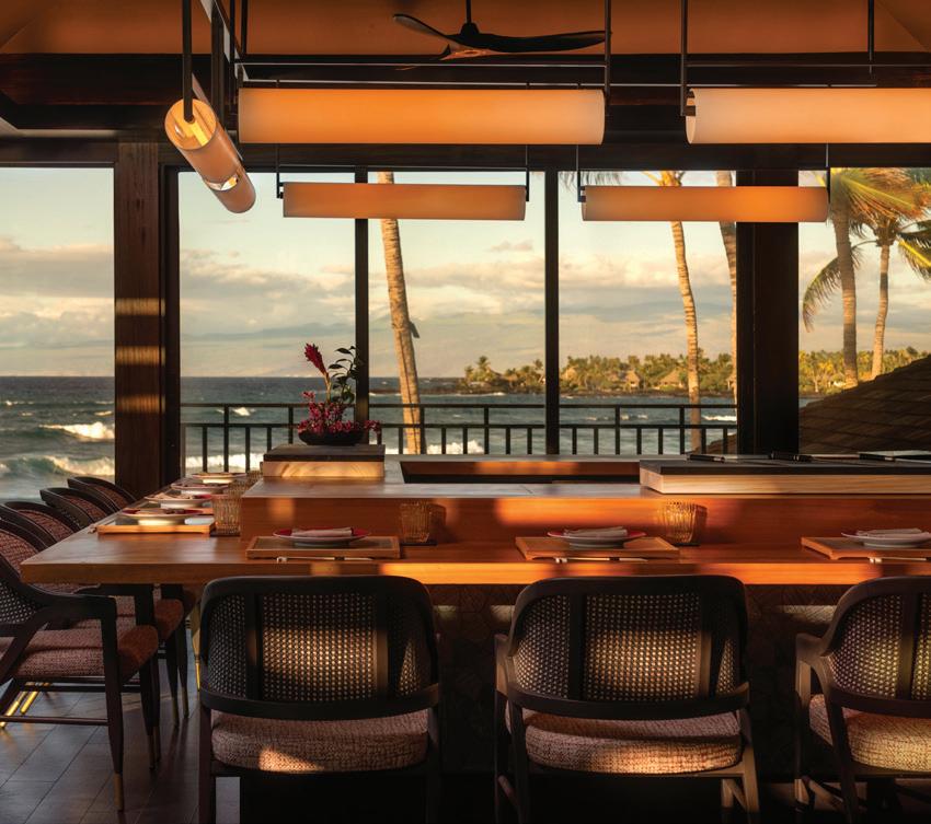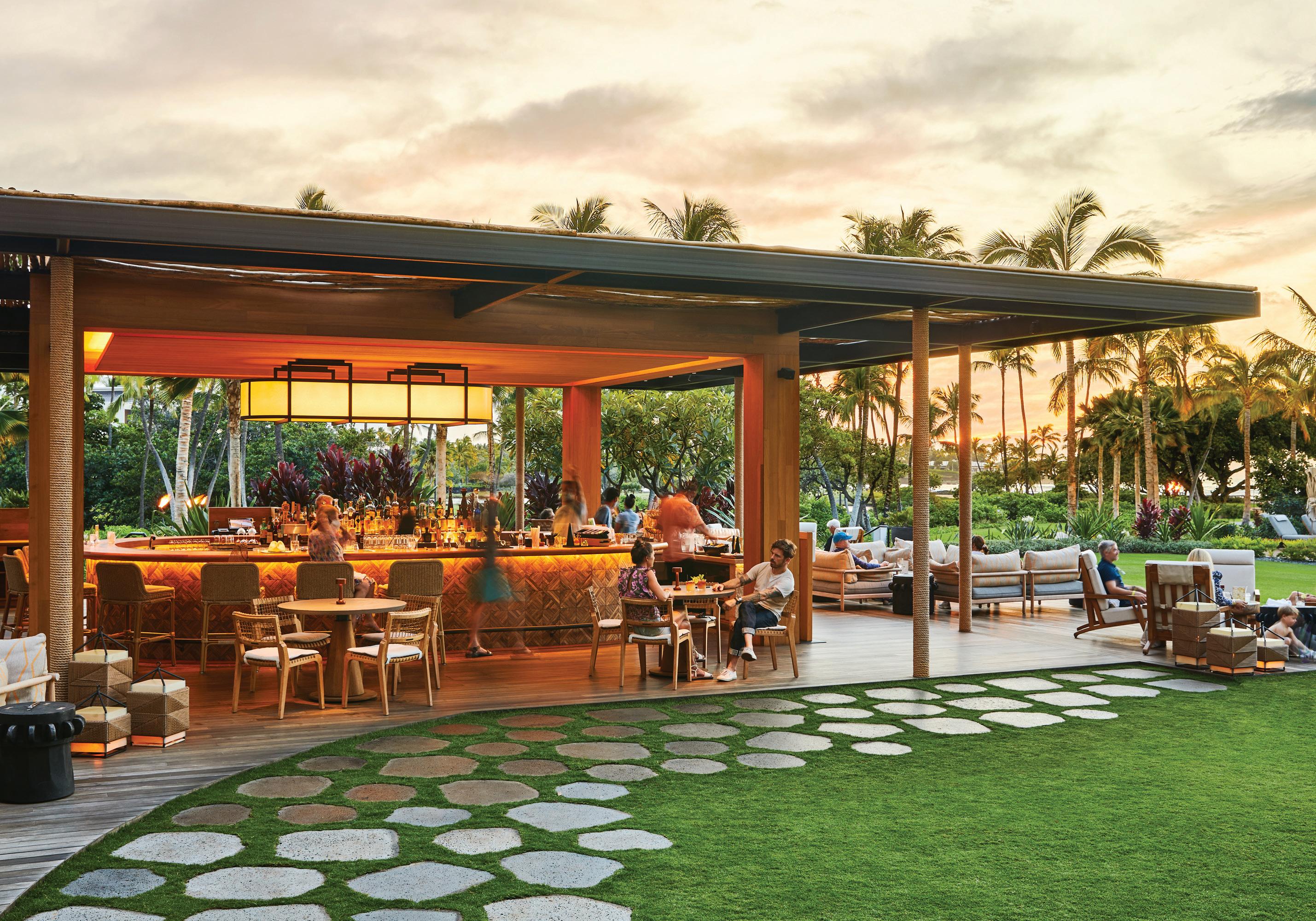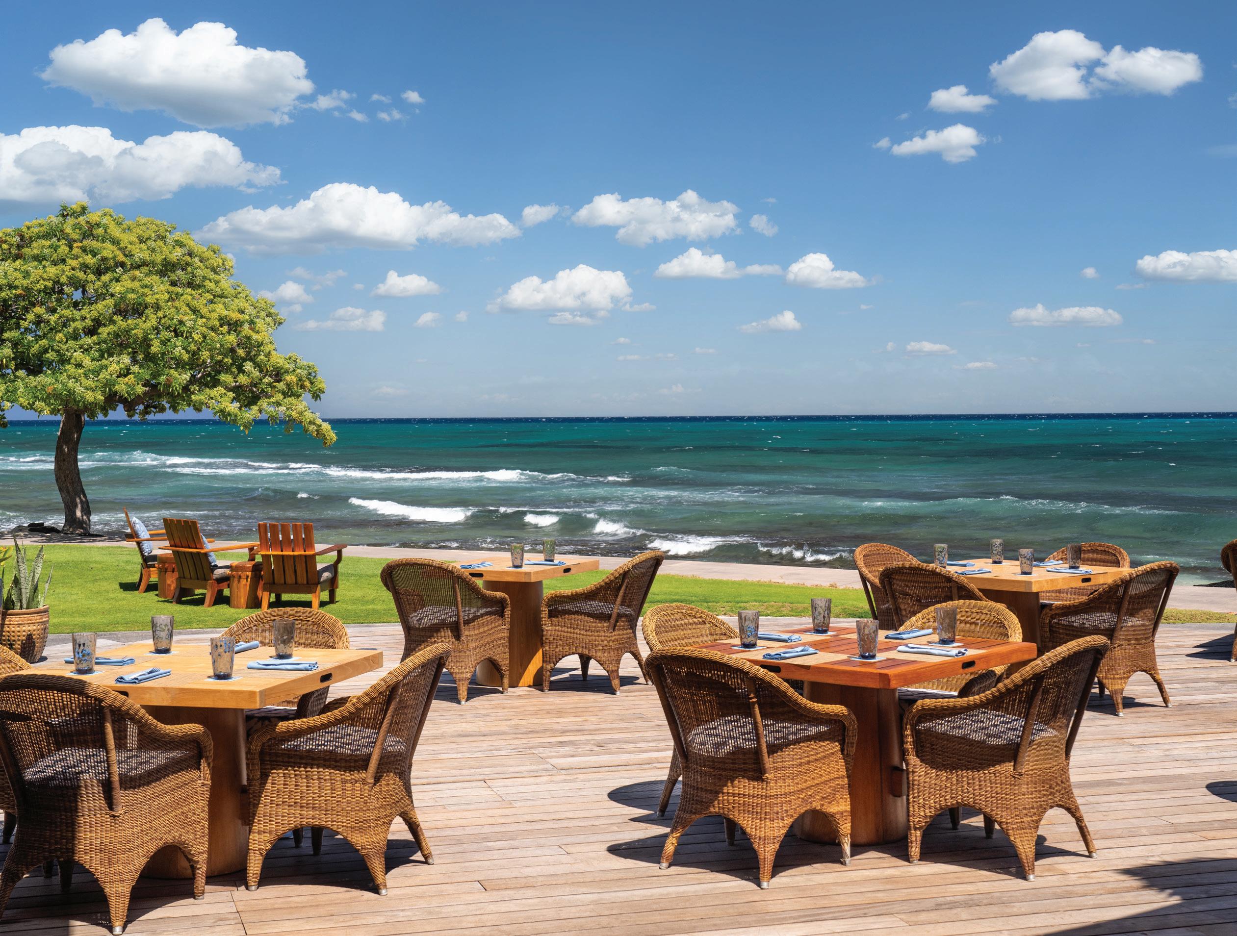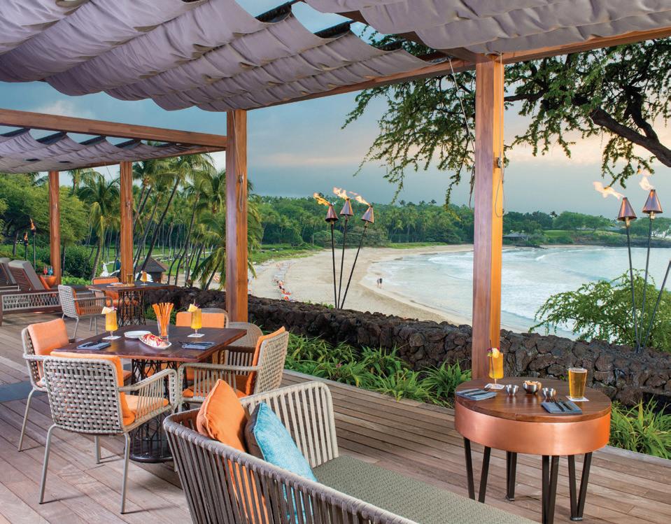 Open to all and nestled just beyond Waiakauhi Pond and the 18th tee box of the Hualālai Golf Course, is the Residents’ Beach House. With casual lānai dining and menu of simply prepared seafood, this is a great venue to whale watch, take in an amazing sunset, or relax and sip on a decadent signature cocktail. Dinner reservations are required.
