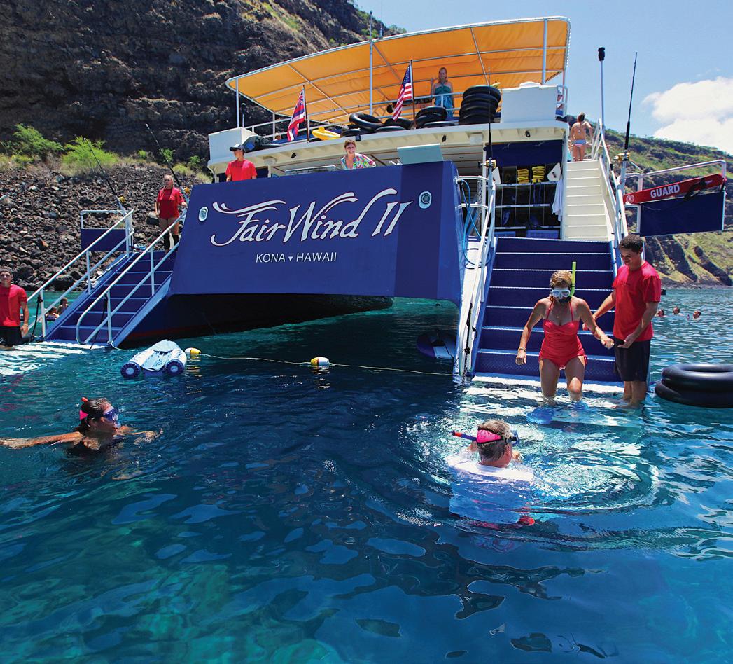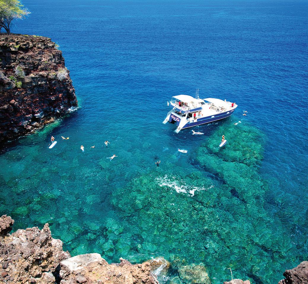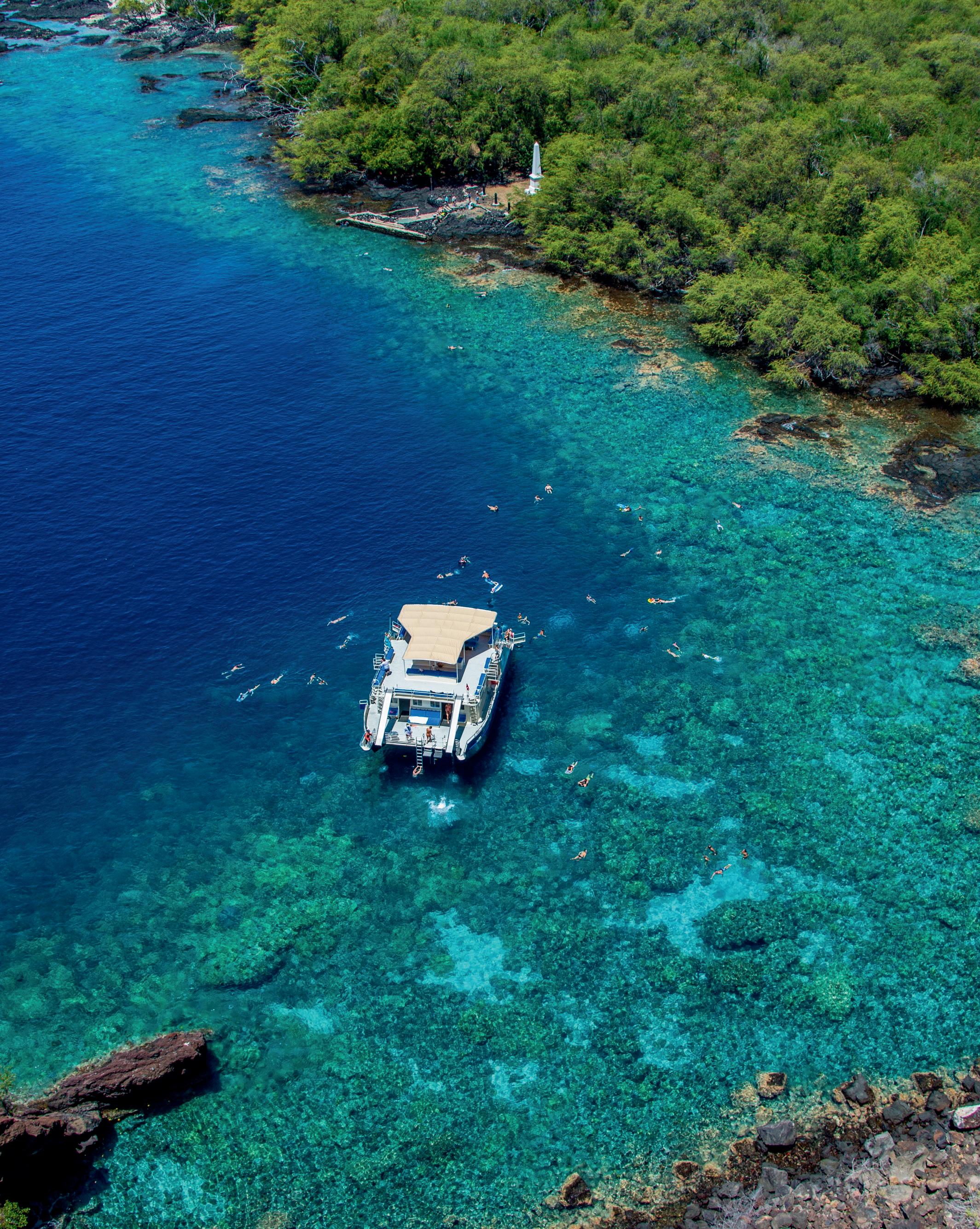 Explore the warm, clear waters of Hawai‘i Island by canoe, paddleboard or 46’ catamaran, aptly named Alakai Nui (great leader). Dive into a world of fascinating marine life on a snorkelling excursion, or to spot humpback whales less than a mile from shore. The vessel offers guests the opportunity to create their own custom ocean adventures, exploring the pristine waters and abundant marine life off of the famed Kona Kohala coast. Enjoy exciting new activities such as deep-sea fishing, and exploration of additional snorkeling locations along the coast. No matter your water-sport interest or skill, we make it easy to experience all the ocean has to offer.