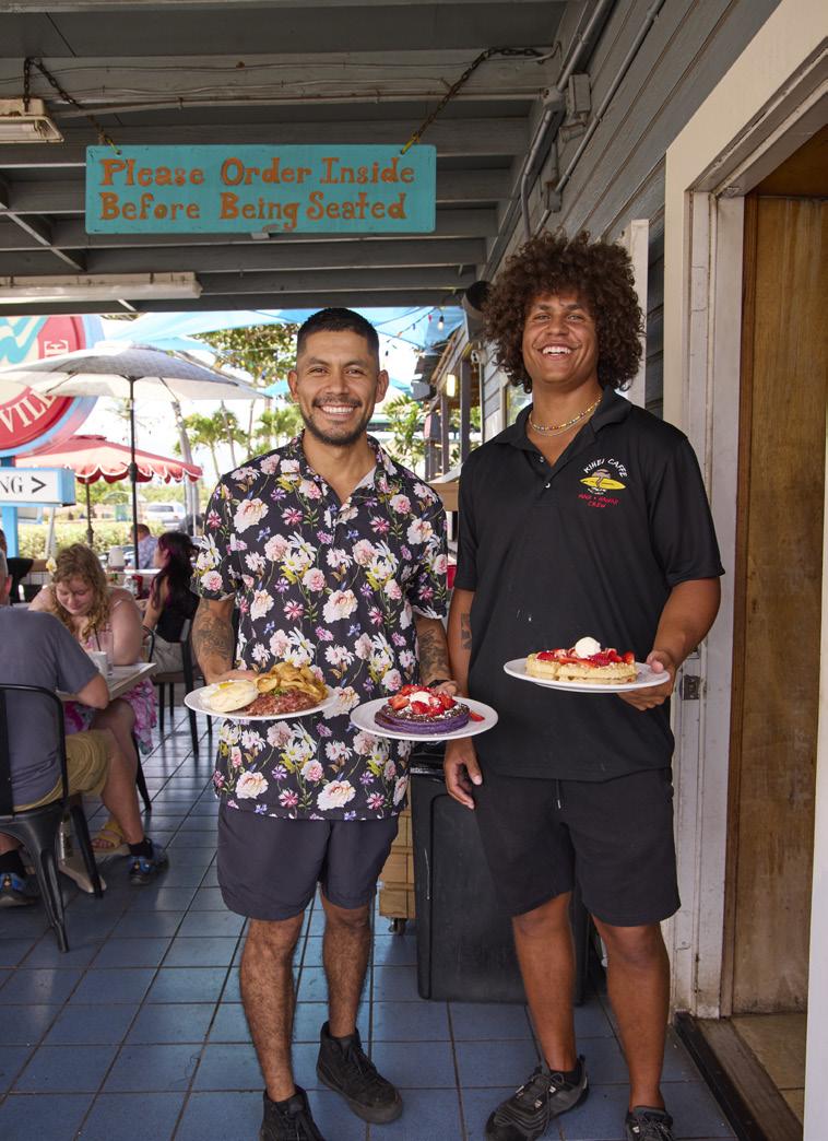 went down to see if I could help. That day, I helped with sanding. After that, I helped every day. Being on the wa‘a changed my life. It led me to education,” says Kalā, who is also a middle school teacher for Lāhainā Intermediate School’s Kaiapuni o Lāhainā Hawaiian Immersion program. “After the fire, lots of kids had to move too, but many still come back and do the Hui’s programs.”