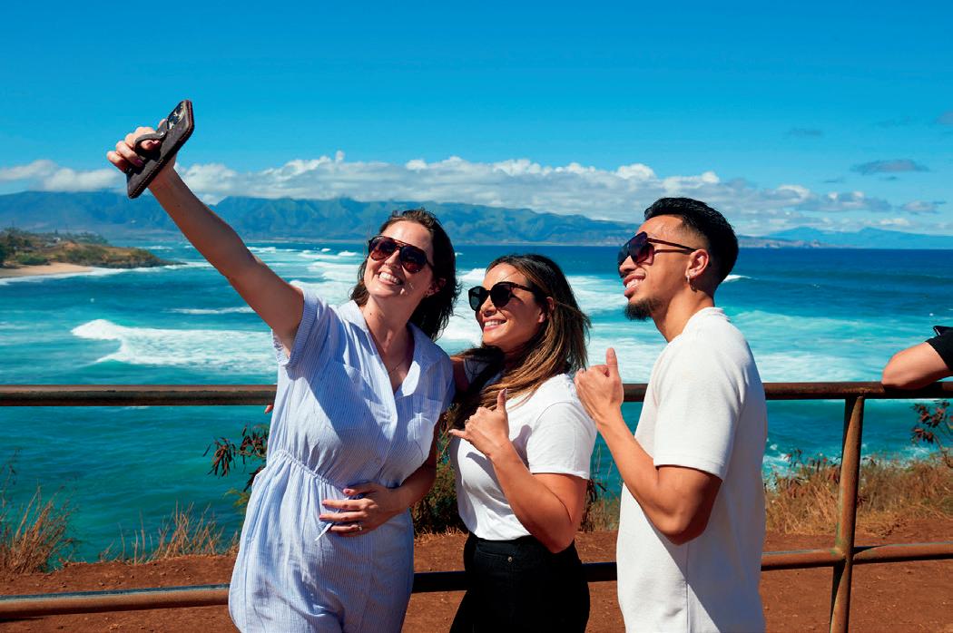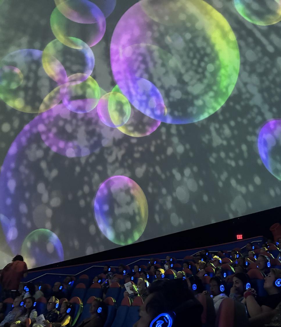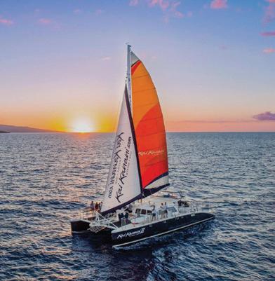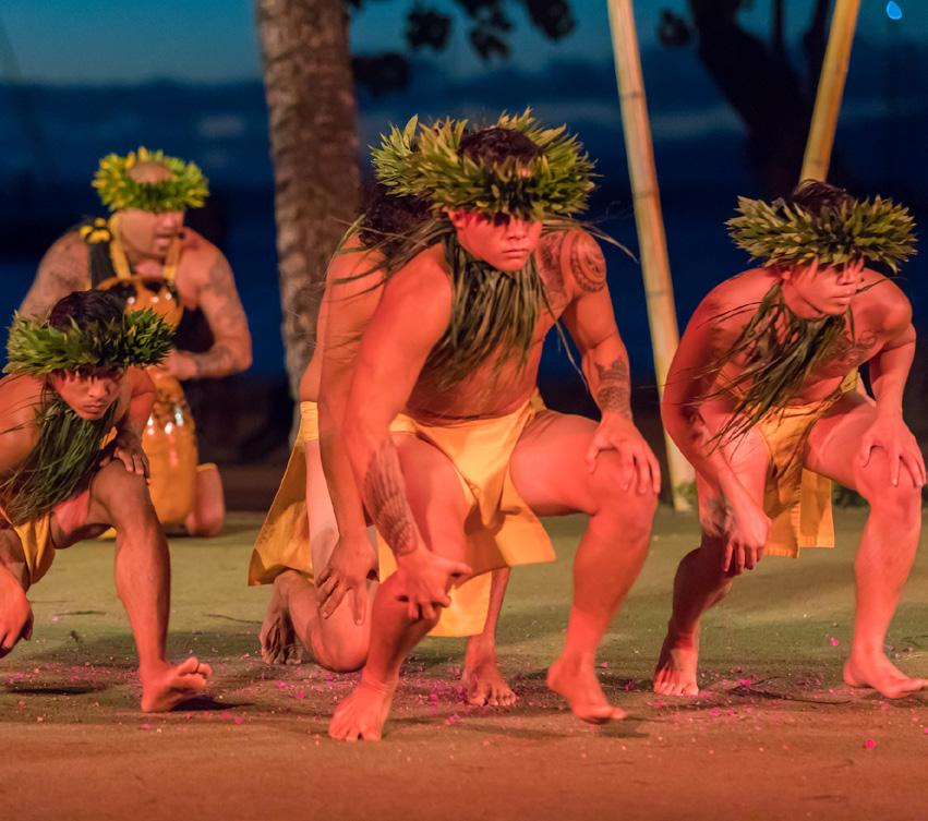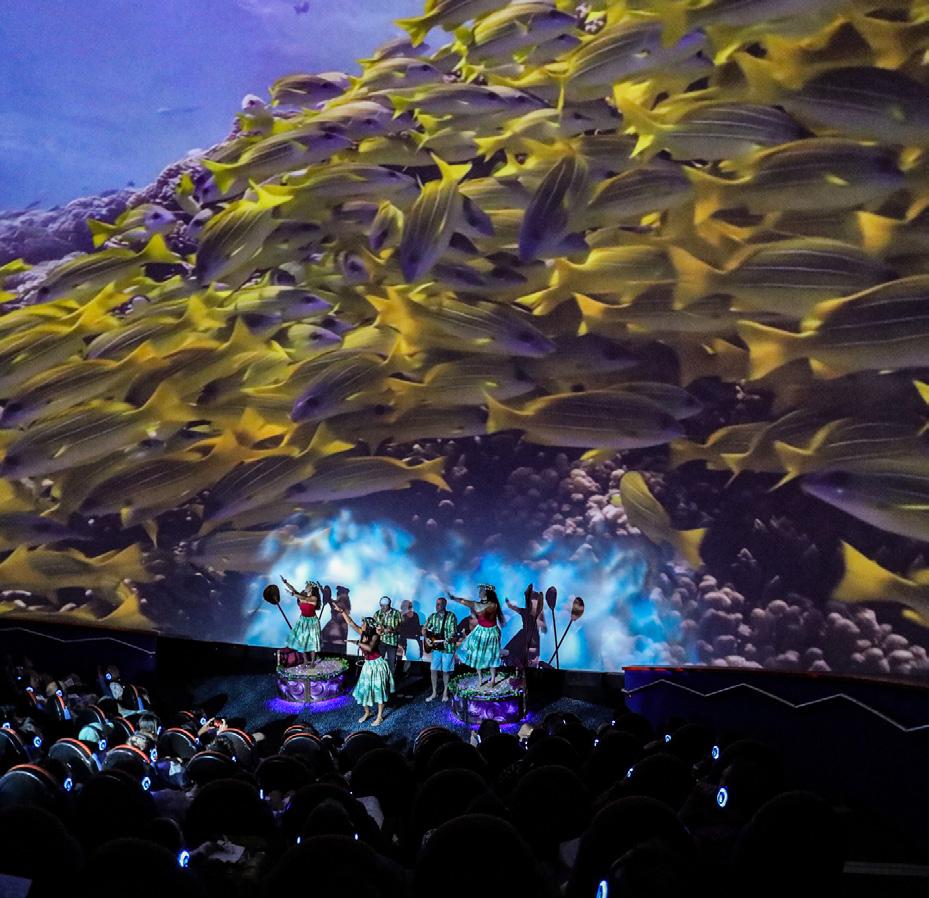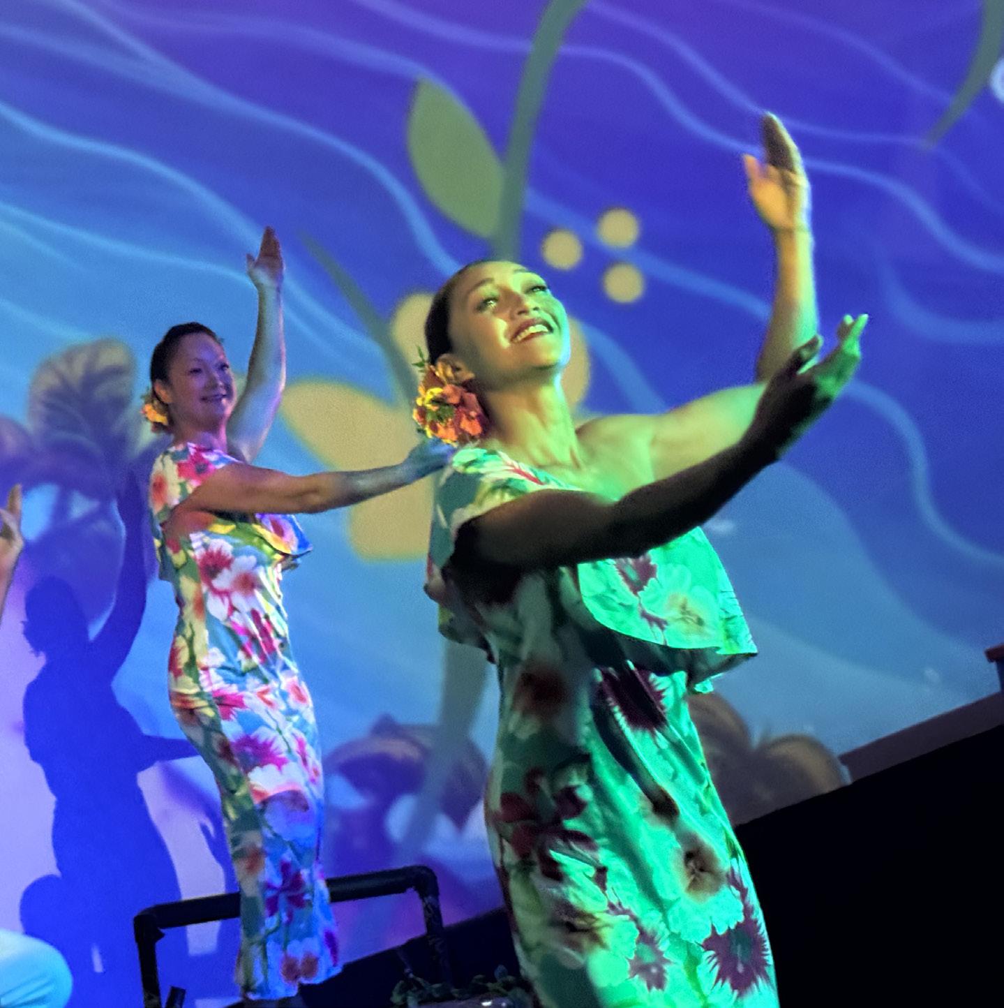The setlist includes classics like “Rhythm of the Ocean,” and “Tiny Bubbles,” as well as a lighthearted tribute to Lāhainā — sharing memories of the town rather than dwelling on tragedy. One highlight includes a rendition of “Surf,” originally by the Ka‘au Crater Boys. During the number, dancers drape a long sheer sheet over the audience to mimic a breaking wave and lyrics are tweaked to reflect Maui’s famous surfing spots. Audience participation is encouraged throughout the show, whether it’s clapping along to a beat, singing a familiar chorus or joining a call-andresponse. All songs are paired with 360-degree visuals, from colorful illustrations to footage captured around Maui.