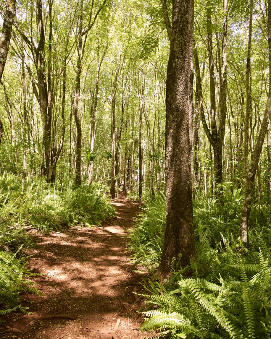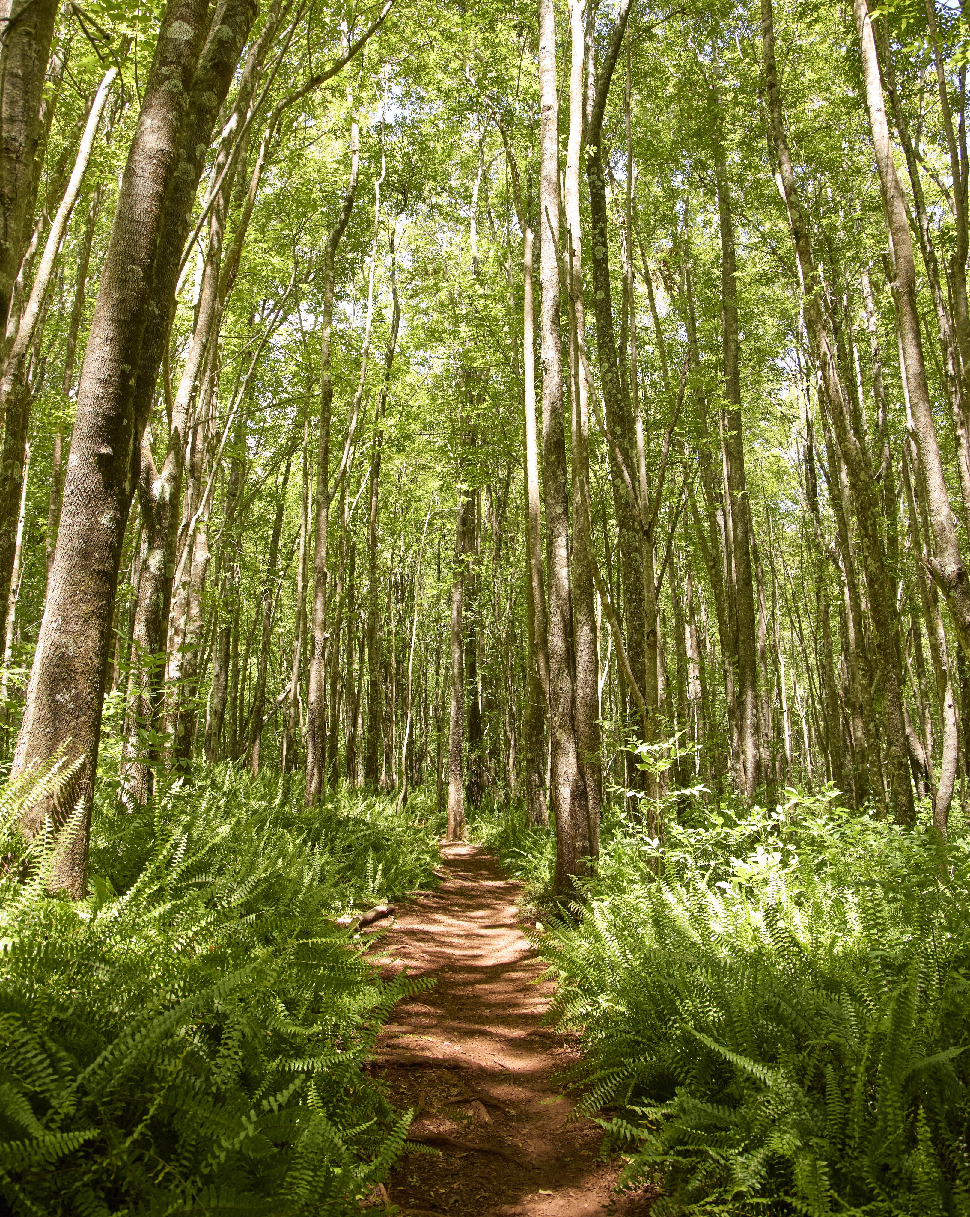 Regardless of whether you’re on two wheels or two legs, the Kahakapao Loop Trail is a tour through changing environments. You’ll move through groves of fragrant pines, corridors of beautiful-but-invasive Himalayan ginger and past quiet picnic spots beneath endemic hala pepe trees. However, the most striking section of the forest cuts through a sea of native kupukupu ferns, their serrated edges pointing skyward beneath a canopy of tropical ash trees.