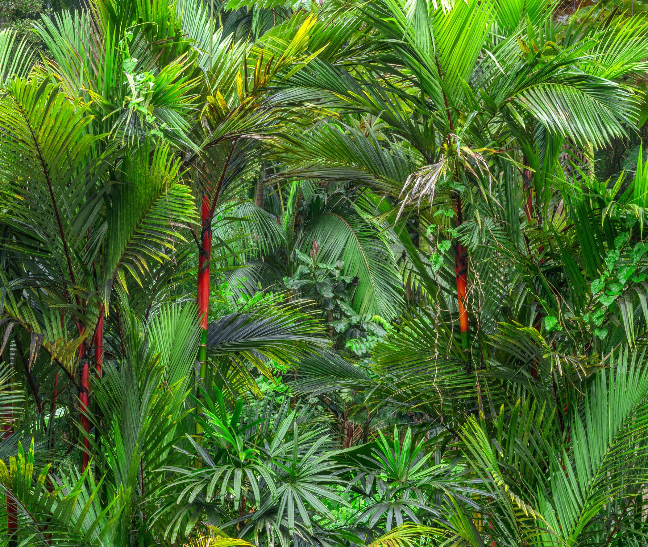The brilliant red stem and lushly colored green fronds of the lipstick palm (Cyrtostachys renda) can add style and panache to your home garden and contribute a tropical flair to your lawn’s landscape. The lipstick palm, also called red sealing wax palm due to its resemblance of the similar colored wax used to seal letters and envelopes, is a native to Southeast Asia and parts of the Pacific. The intensely red-colored stem creates a stunningly exotic aesthetic and a vivid pop when added to a landscape. Needing moderate maintenance, this palm does best in Hawai‘i’s environment and other tropical climates where it thrives off high humidity, ample rainfall and rich soils.