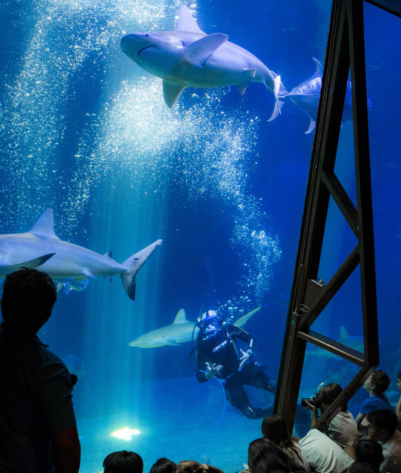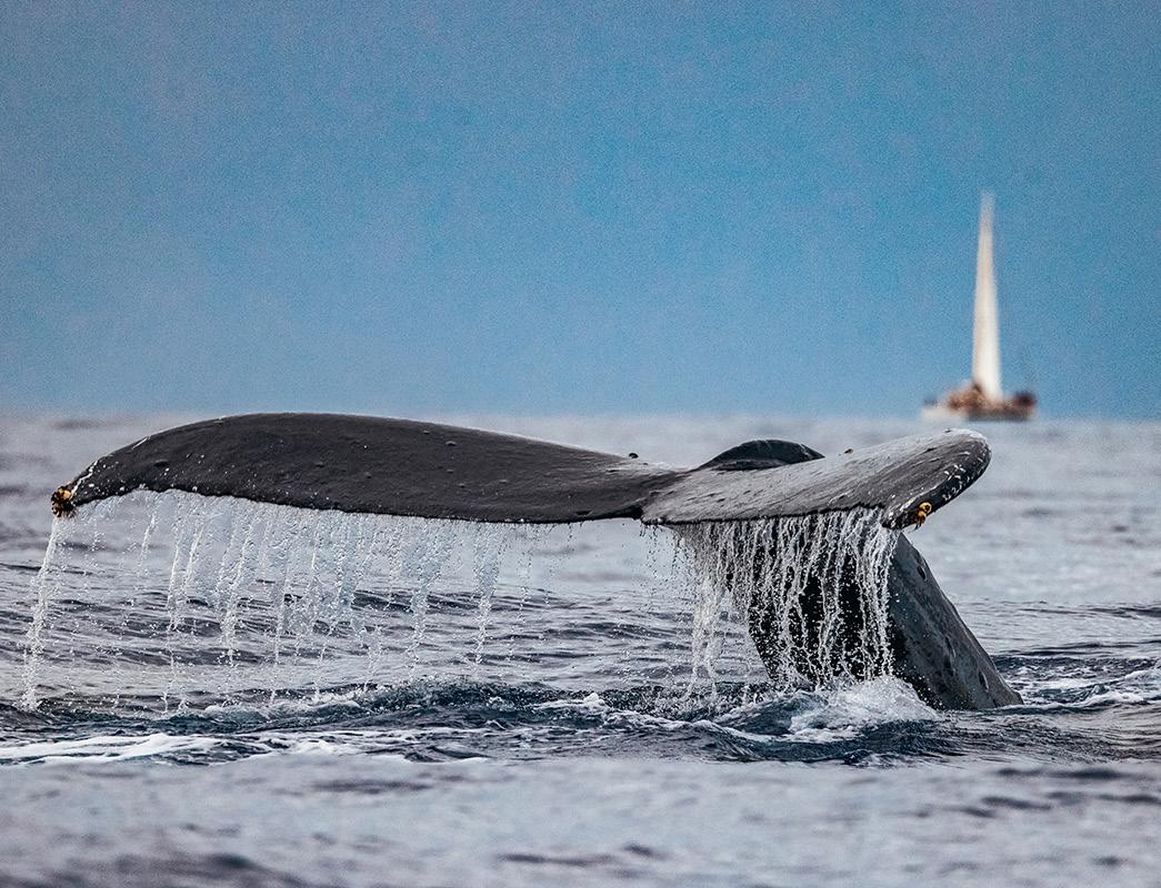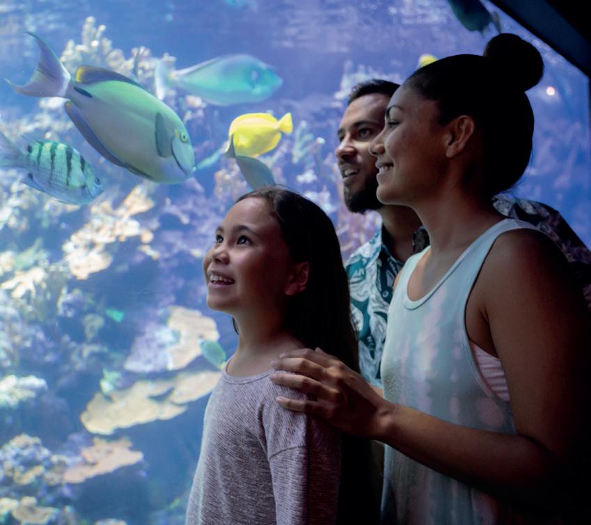 of Maui Ocean Center’s “Humpbacks of Hawai‘i” exhibit — featuring a short 3D film about Maui’s humpback whales. “This show came about because I was watching what was going on with the sphere in Vegas,” says Gilliom. “I thought, ‘Well, we have a sphere. Maybe it’s not like the one in Vegas, but we have a pretty cool venue here.”