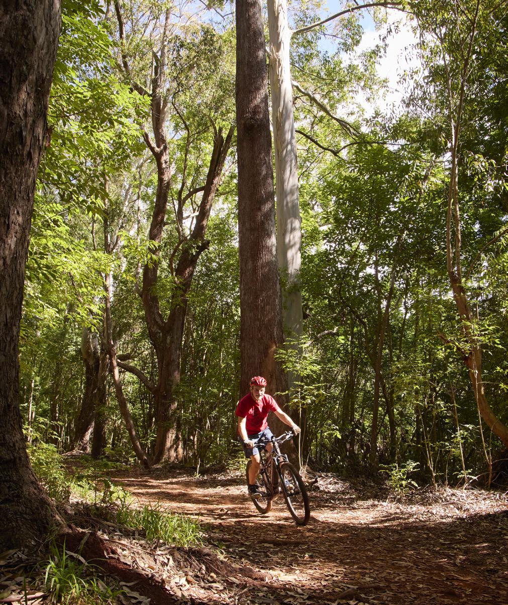 However, that connection can come in many forms. While hiking draws most visitors, those seeking a faster-paced adventure might opt to mountain bike. Rather than lug a bike across the Pacific, riders can rent gear at Krank Cycles, just down the street on Makawao Avenue. Kahakapao Loop Trail is just one of many mountain biking trails within the Makawao Forest Reserve, with routes that cater to all ability levels — from toddlers on pushbikes to seasoned pros.