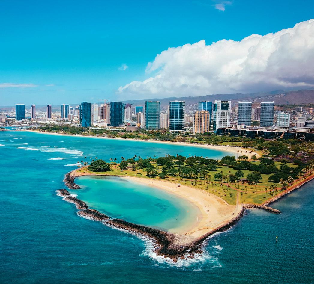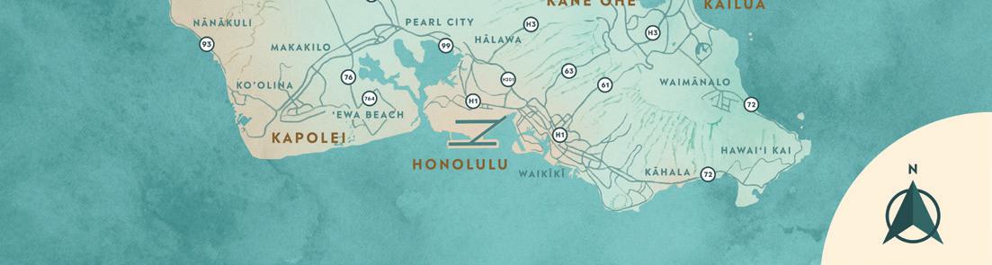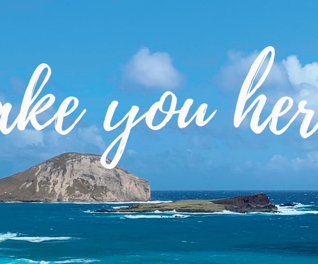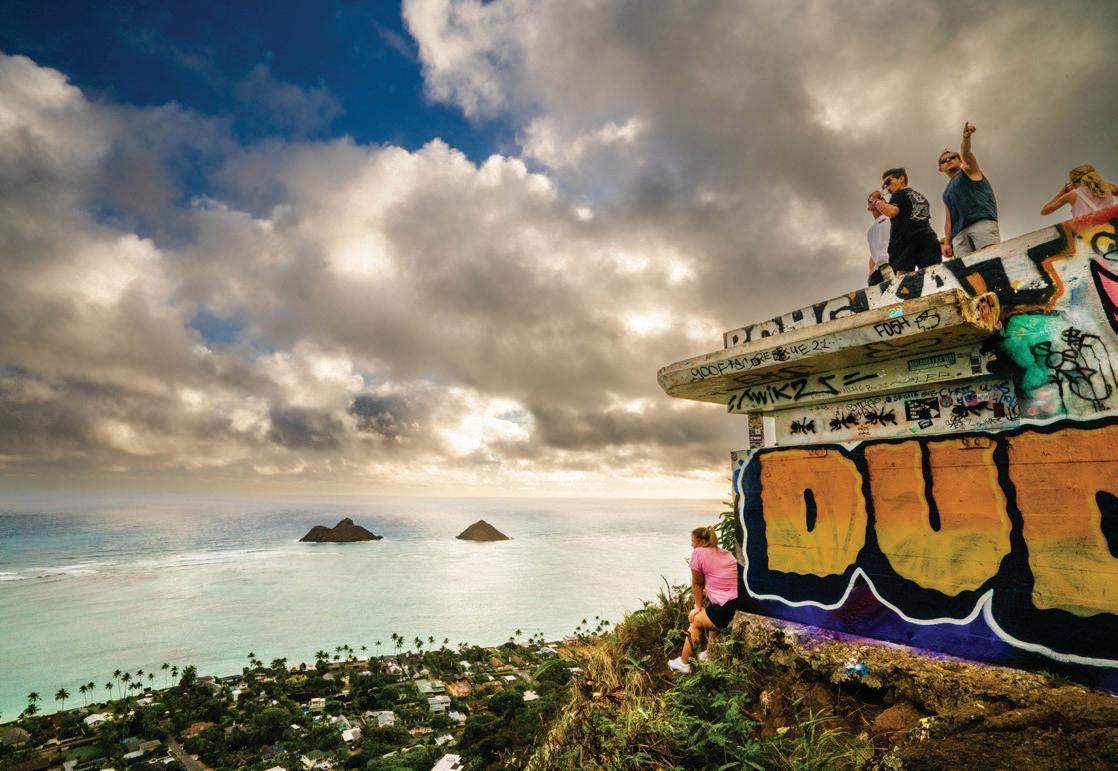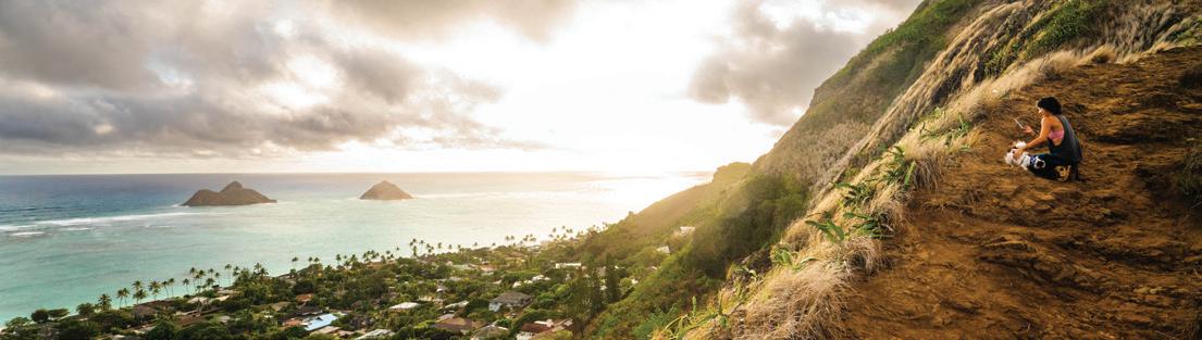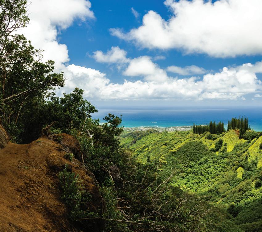 The South Shore starts in Hawai‘i Kai, a town centered around a marina and home to many wellknown outdoor activities including Sealife Park, Makapu‘u Lighthouse Trail, Hanauma Bay and the Koko Crater Railroad Trail.