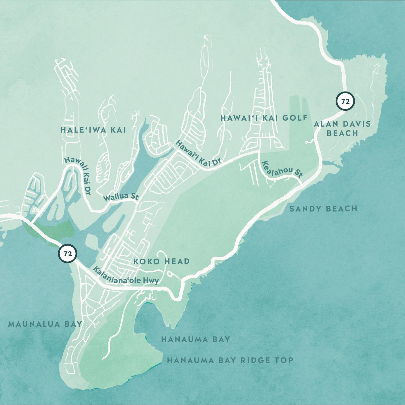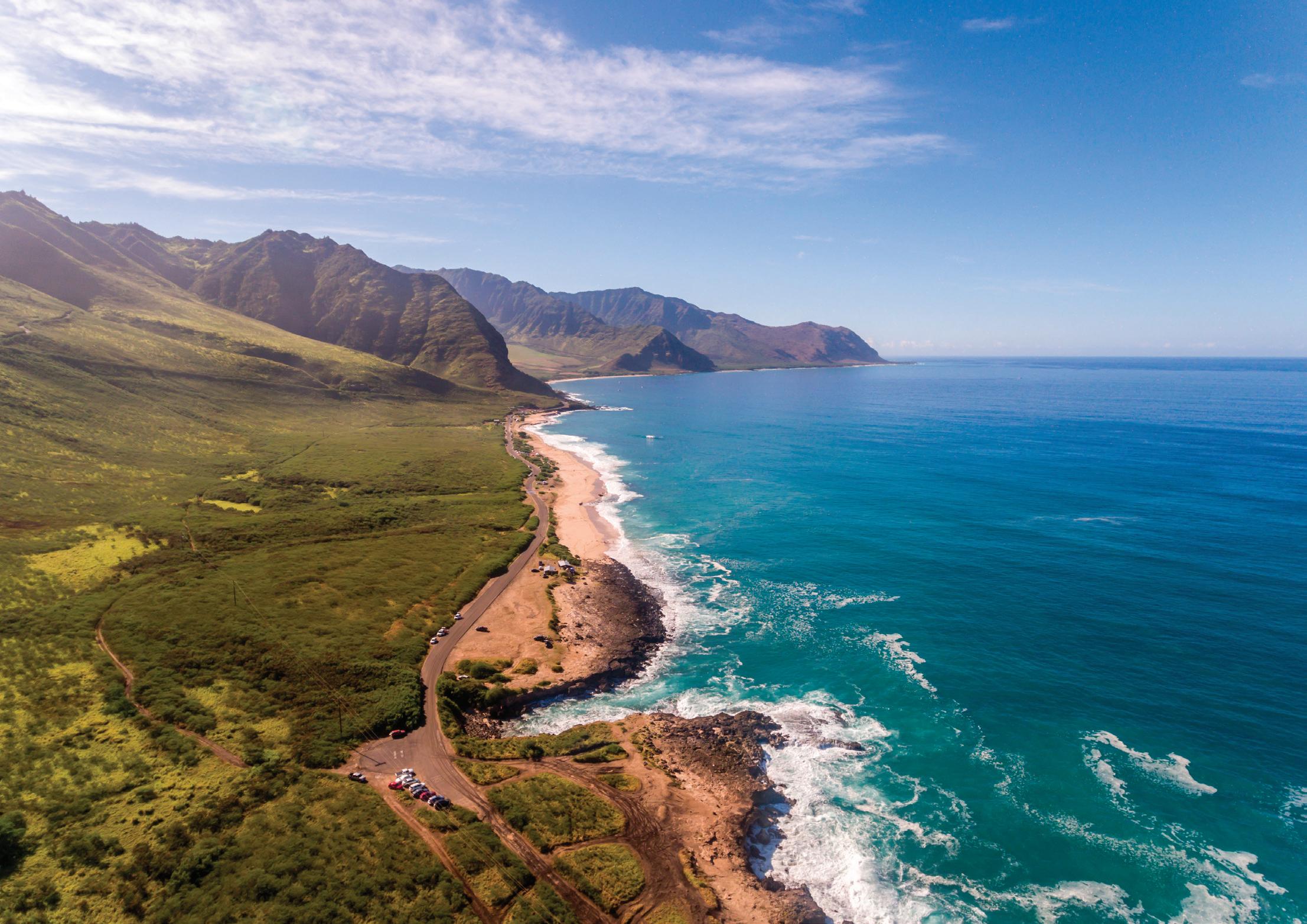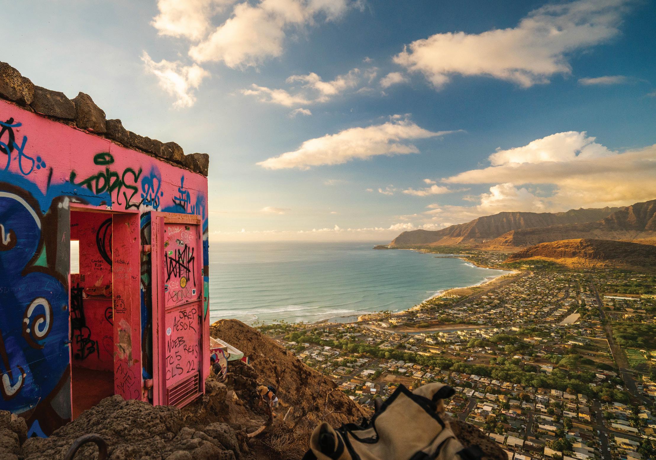 The South Shore starts in Hawai‘i Kai, a town centered around a marina and home to many wellknown outdoor activities including Sealife Park, Makapu‘u Lighthouse Trail, Hanauma Bay and the Koko Crater Railroad Trail.