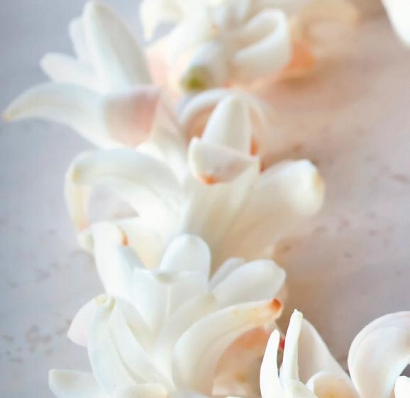 Hawai‘i is known for its fragrant flowers, and one of the standouts is the kupaloke (tuberose). The intoxicating tuberose aroma epitomizes the scent of the islands. These little tubular shaped flowers are picked early in the morning to heighten their scent, and then often strung into the most beautiful smelling lei. The lei with tuberose is very delicate and require refrigeration to ensure a longer life. They are often given as a welcome, to say congratulations or to show love or friendship. Other flowers, such as orchids, carnations, pīkake and ti leaves can also be added to a tuberose lei for extra decoration.