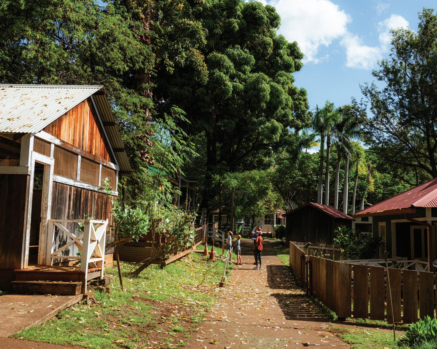 If you continue along the H-1 freeway, the next major town you will hit is Waipahu, a former sugar plantation. Along with drawing visitors for their delicious momand-pop restaurants, Waipahu is also home to Hawai‘i’s Plantation Village, an outdoor museum of historic homes and gardens that tell the story of Hawai‘i’s plantation past.