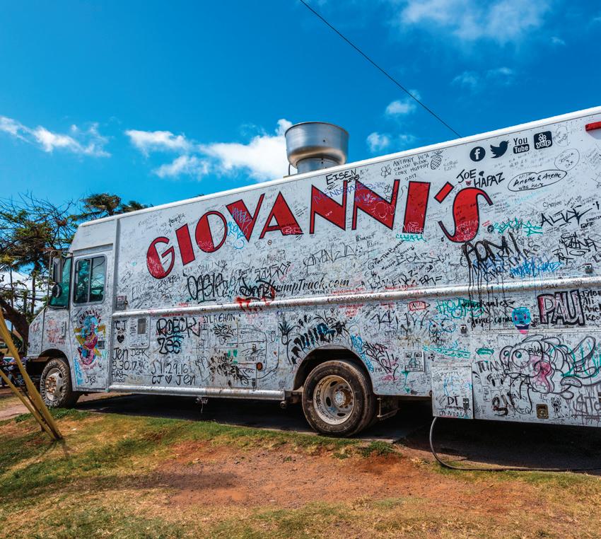 The neighboring town is the sleepy surf area of Hale‘iwa, which is sprinkled with local coffee shops, art galleries, surf shops and food trucks. One muststop along the way is at Hale‘iwa Store Lots, home to Matsumoto’s Shave Ice.