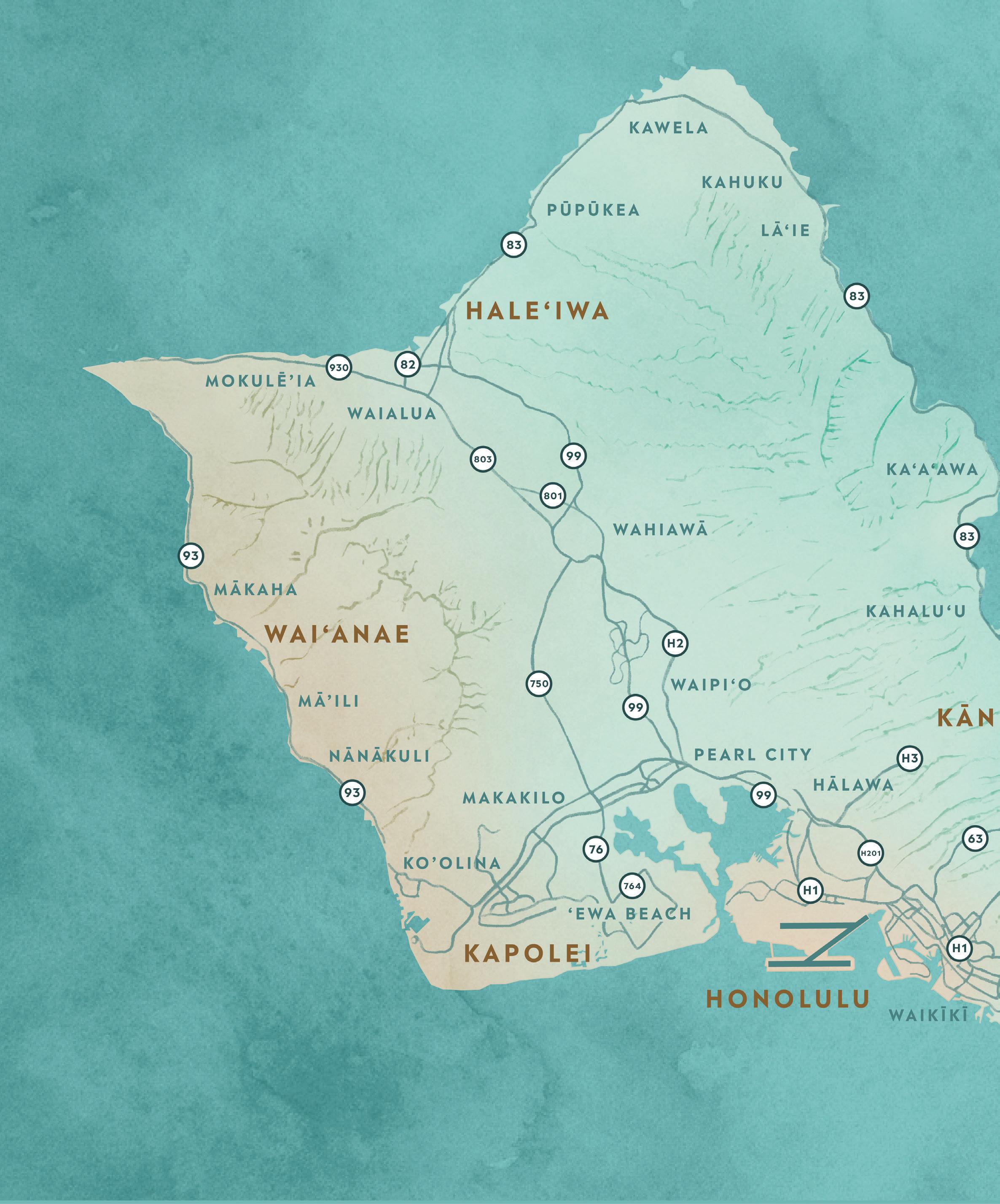 Central O‘ahu encompasses the fertile valley between the Ko‘olau and Wai‘anae Mountain Ranges. Affectionately known as the “Heart of O‘ahu,” the area was home to sugar and pineapple plantations. Today, many O‘ahu residents call Central O‘ahu home.