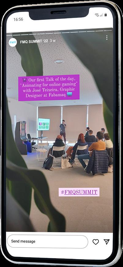 Design of the visual identity for the FMQ Summit 2022 event, hosted by Fabamaq, focused on knowledge sharing in the realm of casino games and targeted towards the Portuguese Game Development community.