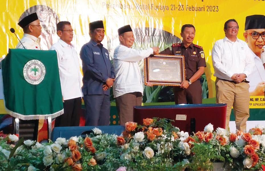 kepada Kajati Riau, Dr Supardi karena komitmennya mengawal harga TBS Sawit Riau. Award yang diberikan merupakan bentuk penghargaan dan apresiasi Apkasindo kepada Kepala Kejaksaan Tinggi