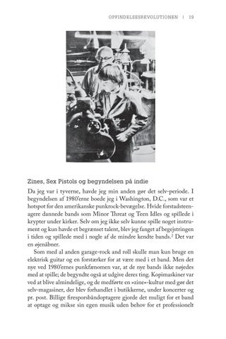 Da jeg var i tyverne, havde jeg min anden gør det selv-periode. I begyndelsen af 1980’erne boede jeg i Washington, D.C., som var et hotspot for den amerikanske punkrock-bevægelse. Hvide forstadsteenagere dannede bands som Minor Threat og Teen Idles og spillede i krypter under kirker. Selv om jeg ikke selv kunne spille noget instrument og kun havde et begrænset talent, blev jeg fanget af begejstringen i tiden og spillede med i nogle af de mindre kendte bands.2 Det var en øjenåbner. Som med al anden garage-rock and roll skulle man kun bruge en elektrisk guitar og en forstærker for at være med i et band. Men det nye ved 1980’ernes punkfænomen var, at de nye bands ikke nøjedes med at spille; de begyndte også at udgive deres ting. Kopimaskiner var ved at blive almindelige, og de medførte en »zine«-kultur med gør det selv-magasiner, der blev forhandlet i butikkerne, under koncerter og pr. post. Billige firesporsbåndoptagere gjorde det muligt for et band at optage og mikse sin egen musik uden behov for et professionelt