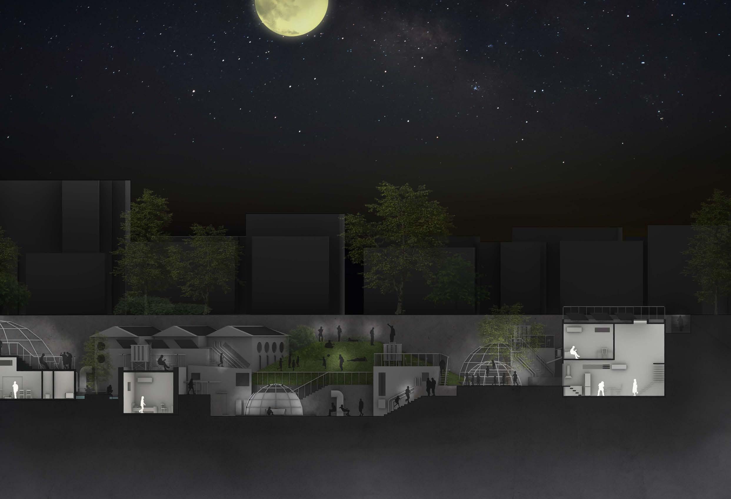 Summer has long been considered the season to enjoy the heat, but in recent years our bodies have become less and less able to withstand it.“Makuranosoushi”, a classic of Japanese literature, says that summer is best at night.In this classic, the author describes various scenes that appeal to people’s emotions, such as the darkness of the night, the moon, and the rain.Moreover, fireflies are mentioned. Fireflies hide themselves behind leaves and in bushes during the day, but at night they fly about in the air, glowing.Following the story of “Makuranosoushi” and fireflies, I thought that what if we should hide ourselves in our controllable homes during the day and venture out into the outside world littered with uncontrollable elements at night.Unlike in ancient times, when light could be artificially produced, today’s nights are colored by moonlight and artificial light. Smartphones will be part of those lights.Outside equipment that comes out to make indoor spaces comfortable is also an important factor, and equipment systems exposed outside affect the behavior of people, non-human animals, and insects.Thus we thought we could gain new summer comfort by avoiding the extremely hot summer days and throwing ourselves into the emotionally charged summer nights.