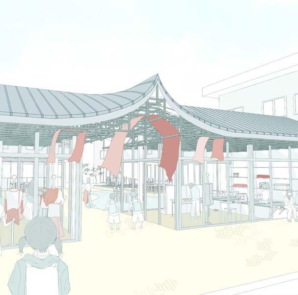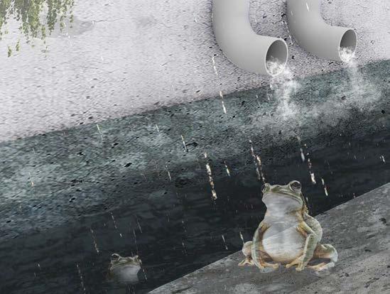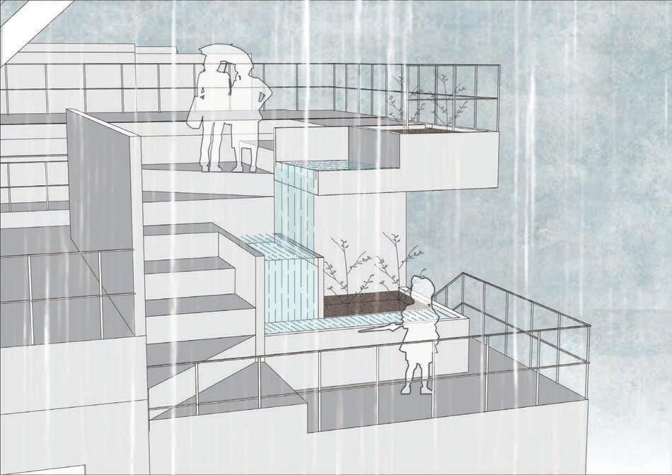 Architecture, which has played the role of sheltering people from wind and rain in their daily lives, is composed of roof shapes, gutters, and eaves that keep the rain away. However, rain is an indispensable blessing for human life. Just as light, wind, and other natural elements work well with architecture to create a comfortable lifestyle, why not incorporate rain into human life? We envision a new value of rain, aiming to create a lifestyle in which we can look forward to rainy days.