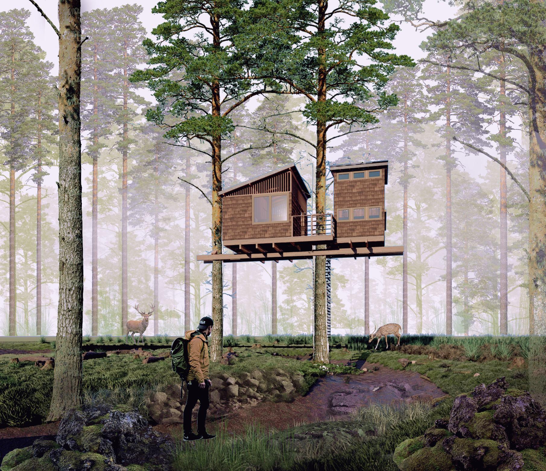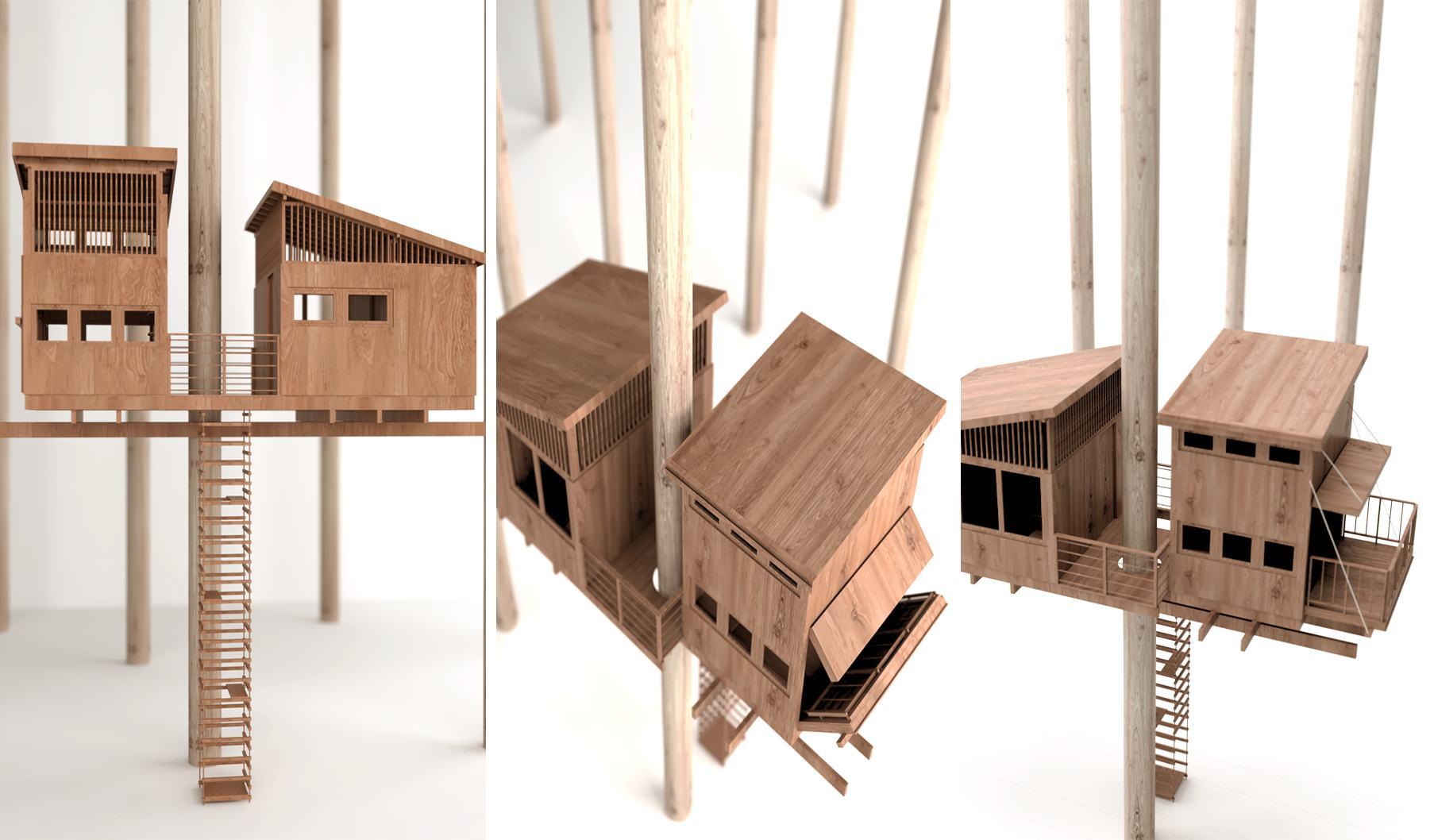 The ideology is to maintain the ecology and environment even after the construction of the tree house. The house has been designed in two integrated but separated modules.The tree house is adaptable to the needs of the user and also acts as a recreational space in itself.