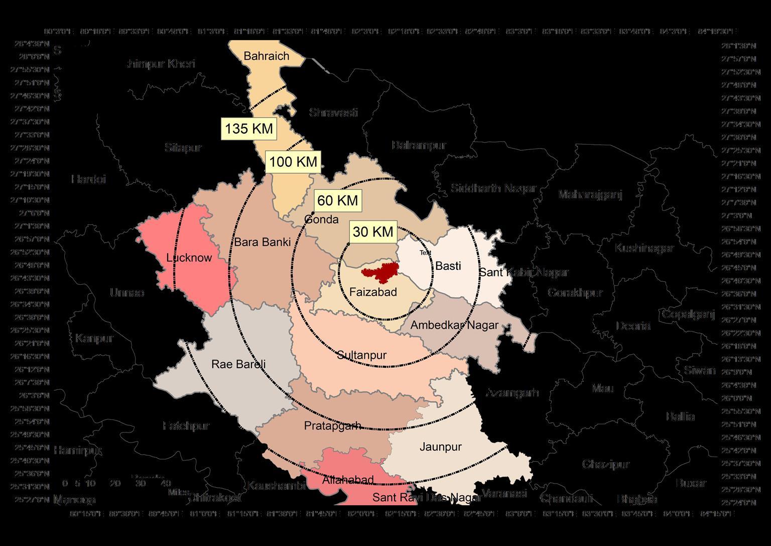 Ayodhya with inbound tourists of 70000 per day, Prefers hotels in the range of 1-2 km