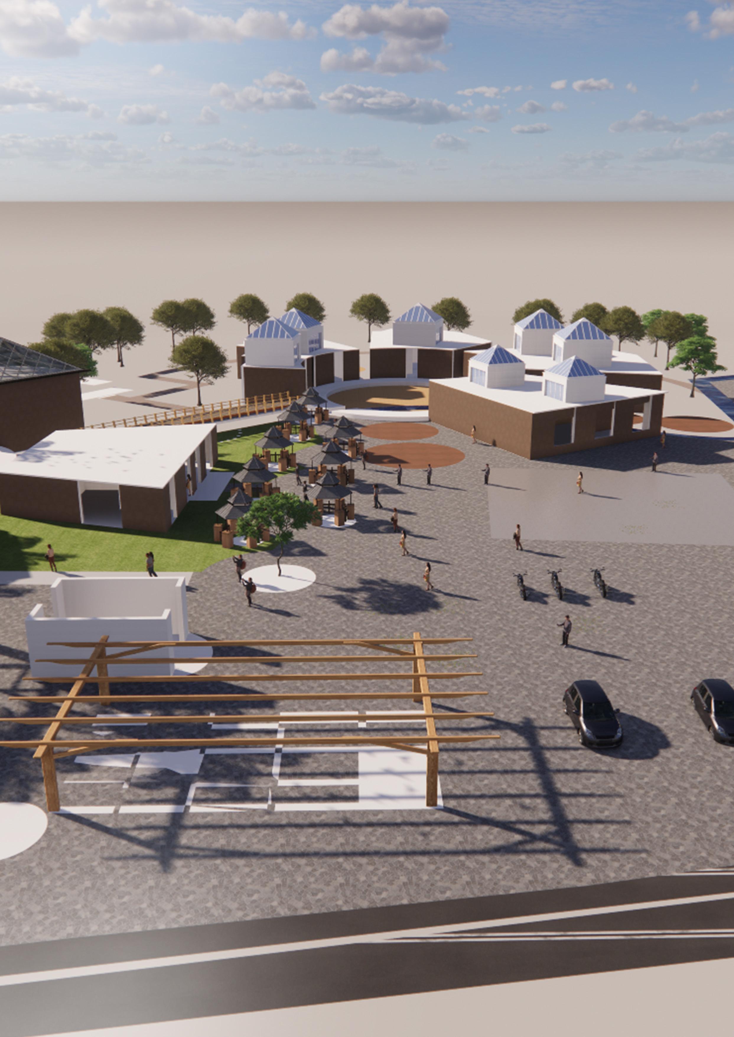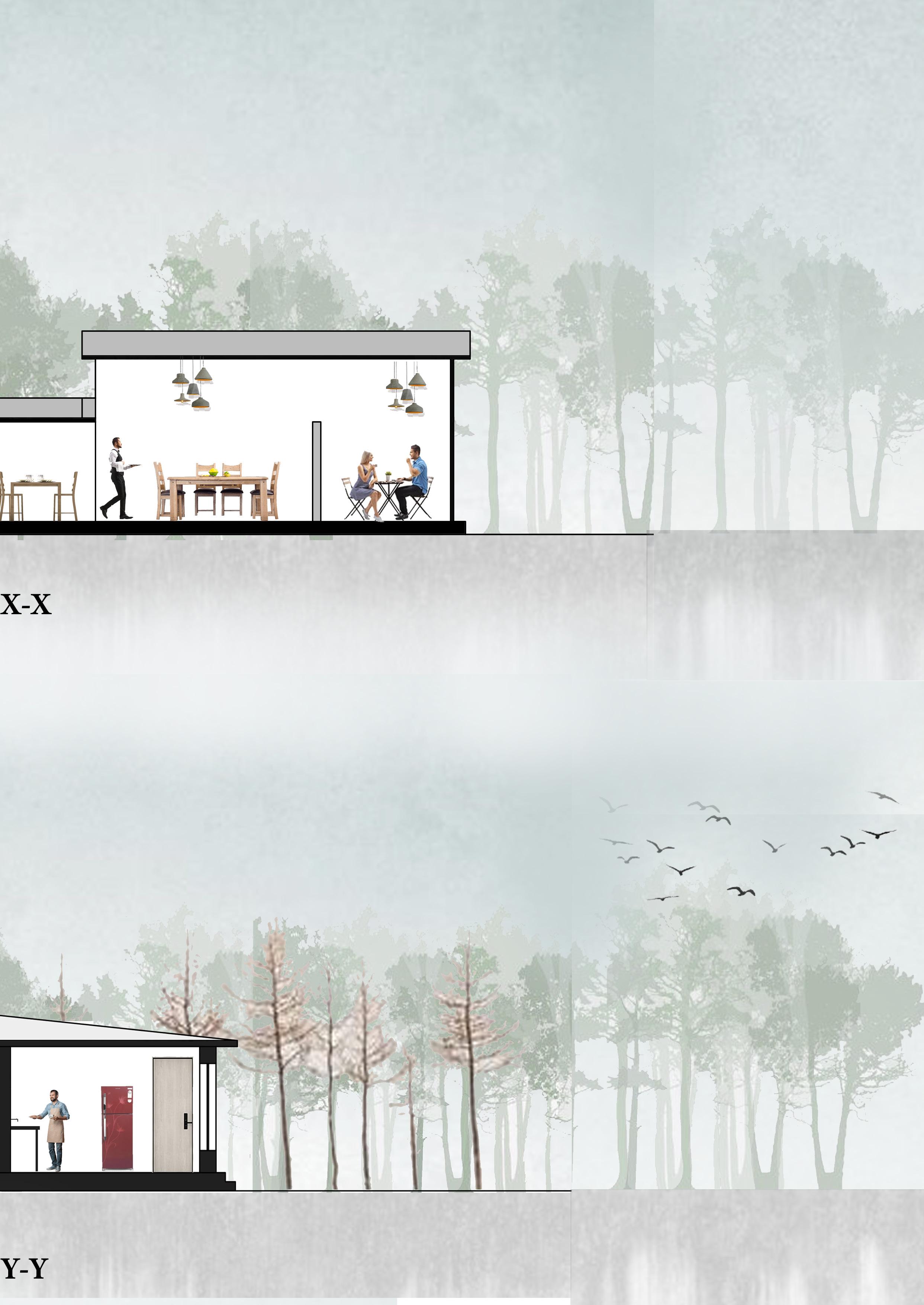THE REQUIREMENT IS TO DESIGN THE CAFETERAI AT THE BAGARKOT OF DHARAN WHICH IS RECOGNIZED AS THE FOOD HUB OF DHARAN. THE CAFE IS DESIGNED CONSIDERING USERS BEHAVIOUR IN ORDER TO ATTRACT THEM. ALSO THE CLIMATIC CONDITION OF THE DHARAN IS CONSIDERED USING THE SLOPE ROOF. THE FORM OF THE CAFE IS DERIVED FROM THE SHAPE OF THE GIVEN SITE WHICH IS TRANGULAR THE CAFE OCCUPIES THE INTERNAL DINING, BAR , ROOF TOP DINING AND SPILL OUT AREA WITH GOOD FACILITY OF PARKING AND ALSO THE PLAY AREA FOR THE CHILDREN’S THE COURT AT THE CENTER PLAYS THE MAJOR ROLE ROR THE LIGHTING AND VENTILATION AND ALSO EASY CIRCULATION.