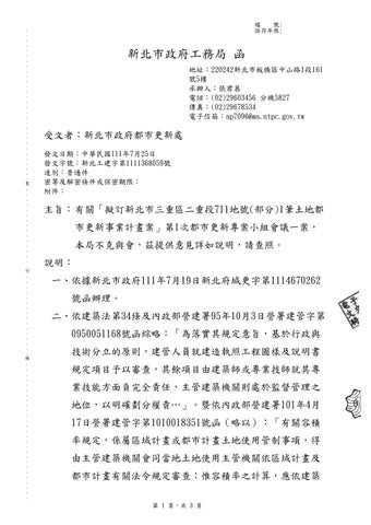 主旨:有關「擬訂新北市三重區二重段711地號(部分)1筆土地都