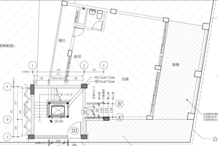 型鋼為主結構,外覆防火時效一小時輕隔間牆,本樓梯間屬挑空挑高空間 設置昇降機(詳設計圖A1-1至A4-1,詳計畫書第9-11至9-15頁)。