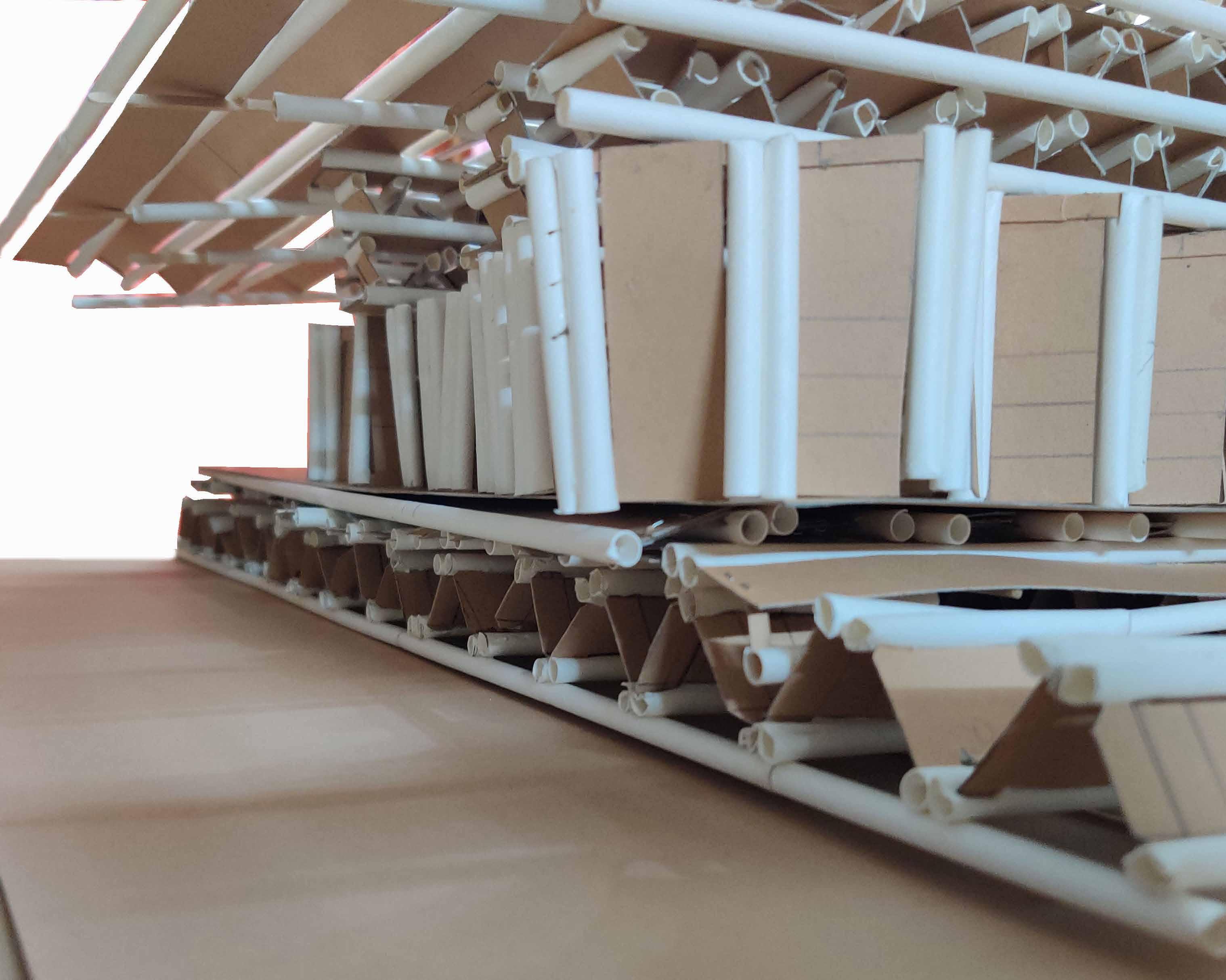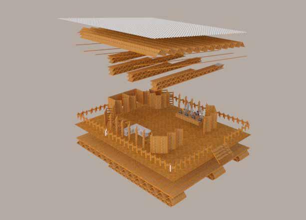 An intent to design a module/unit which will be flexible enough to assemble and dismantle, the module manually. The module is made up of 2 bamboo having bamboo compressed sheet panels in between, this adjustable panels can be rotated for light ventilation. It restricts the amount of external noise to enter in, due to the presence of acoustic sheets in between From the plinth till the roof comprises Themodule.modules are placed in V-shape to create a balance and strengthen walls to take load from top, the grey and black water treatment not only helps in treating the water but also provides knowledge to visitors. This modular nature of the material helps in achieveing different forms for various events.