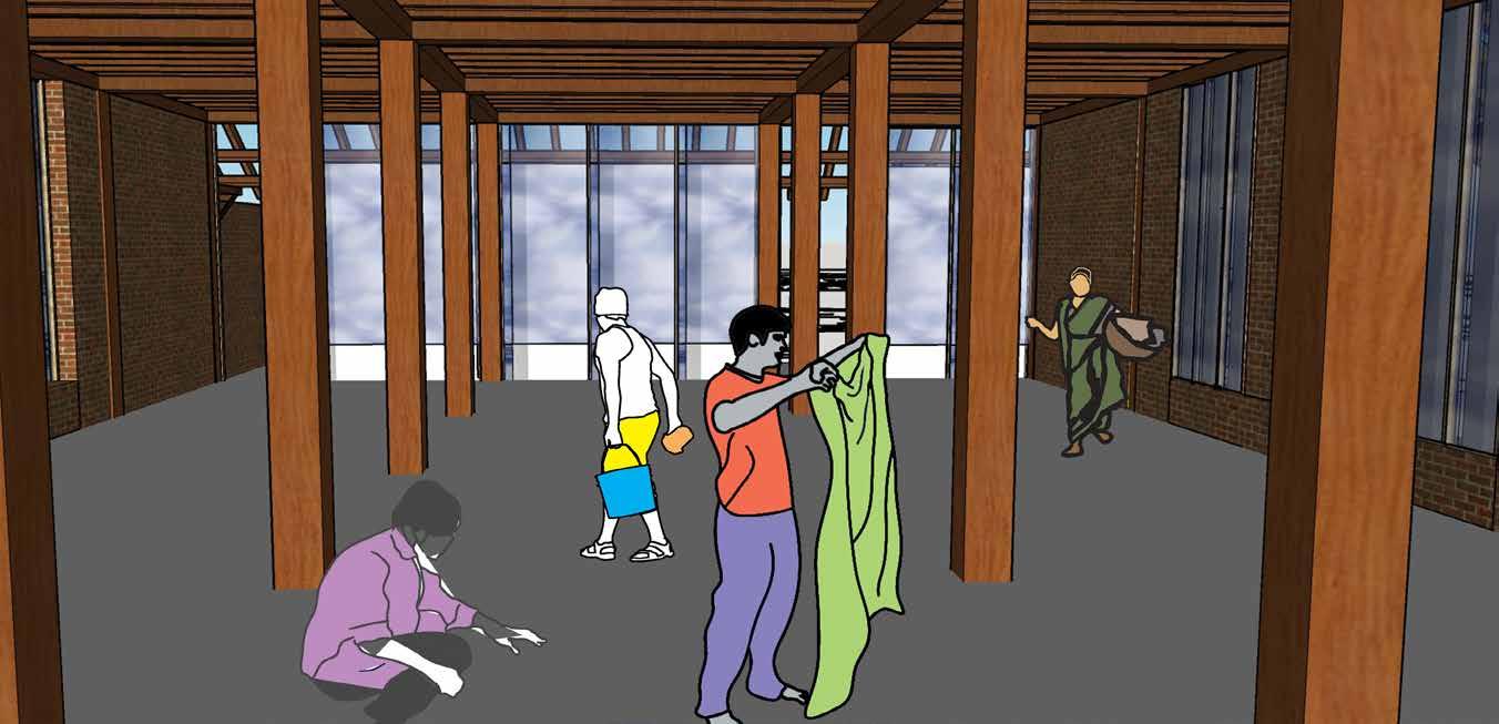 A factory which becomes a core for owners and workers where their life gets associated with it. An intervention was necessary not only for the large scale production but also for betterment in workers life. The existing factory with a constantly occupied narrow corridor, restricts the flow of movement and creates a pause. An intervention is done where the rooms are at the periphery with the open courtyard at the core, breaking the visual boundaries of open and close space. A varied level courtyard helps in utilising the space more efficiently. A recessed space on the walls provides workers a resting space in the afternoon.