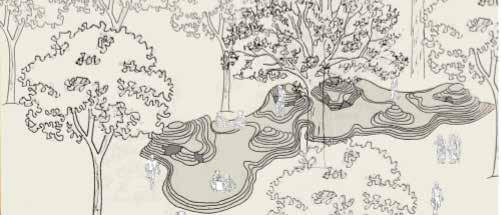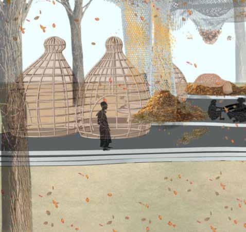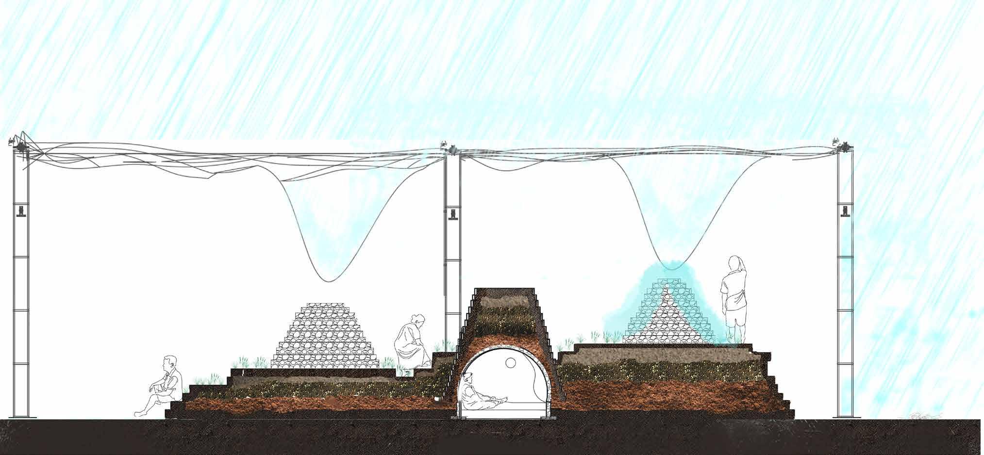 SanjaySENSORIUMTECHNOLOGICAL04)Gandhinational park, Borivali (E), Mumbai. Phenomena was falling into nature which creates a layers of materials - deposition. there was a sense of understanding towards the control of Deposition It makes the space dynamic due to the change in season. A pulley is the mechanism used in order to control the mesh and settling of elements.