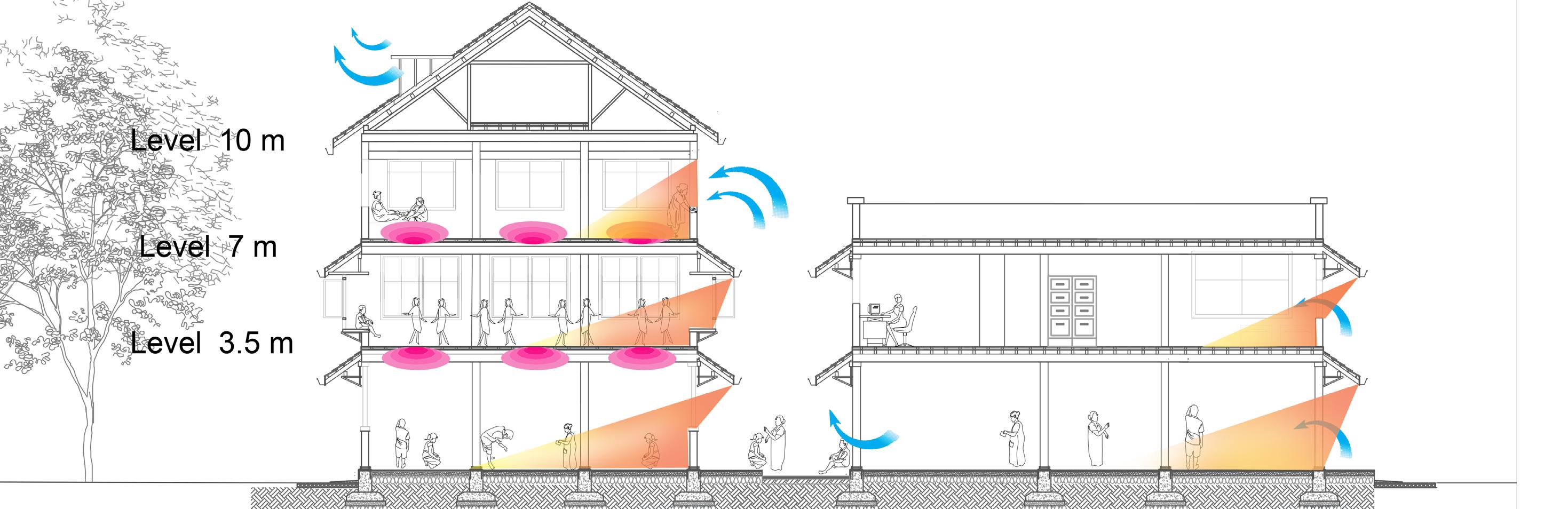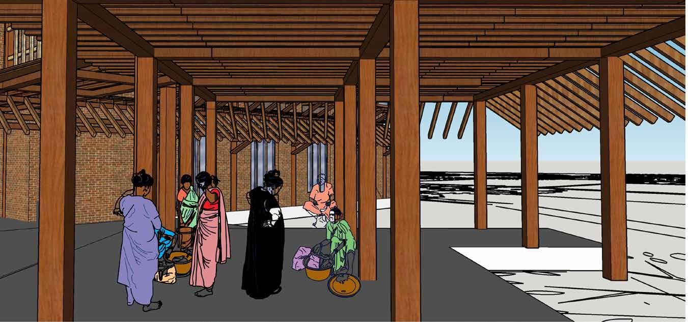 The main intention of using timber as a frame structure material is to create a curious interaction of visitors with the structure and to promote and adapt the use of local materials. It creates a chain of income to the rurals as well as it does not harm the nature, The atrium with a timber railing present at the core feels the entire building is light, and avoids the perspective of seeing each floor has a single blocked floor, instead makes it more fluid.
