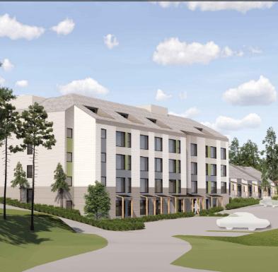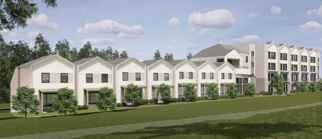 The Residences at Qualicum Station is a development located at the intersection of Village Way and Railway Street in Qualicum Beach. It includes a 5-storey multi-family residential building with adjoining seven 2-storey rowhouses totaling 56 units. These ranges from studio to 3bedroom units, including some 1bedroom accessible suites.