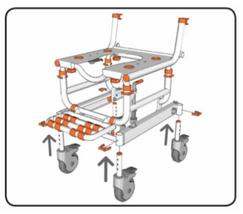 ALWAYS ensure that your Showerbuddy shower chair is capable of maneuvering over the surfaces that will be encountered, prior to operating the shower chair with any user(s). This chair is only intend for use Indoors, on flat surfaces, without thresholds, steps, curbs or obstacles.