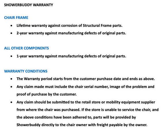 Your authorized Showerbuddy dealer can help you with any adjustments you may want to make on your Showerbuddy shower chair or can provide clarification on any of the information contained herein