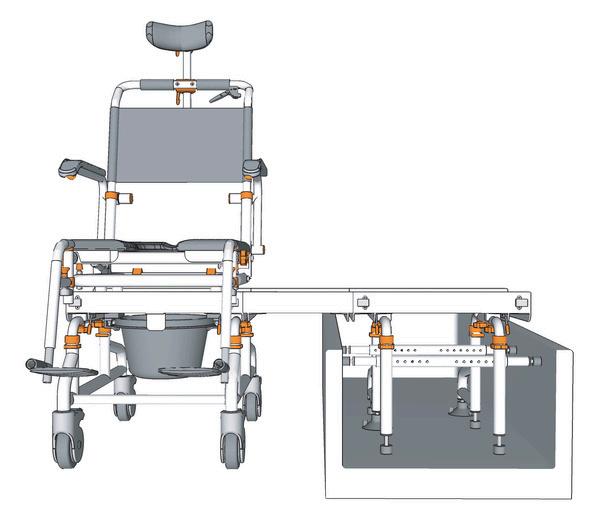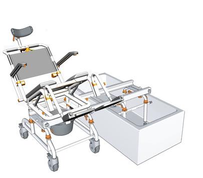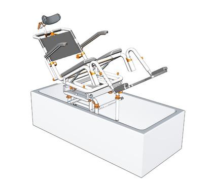 With your Showerbuddy SB2T secured in position on the bath base with the bridge and wheeled base removed you have easy access to the user and chair.