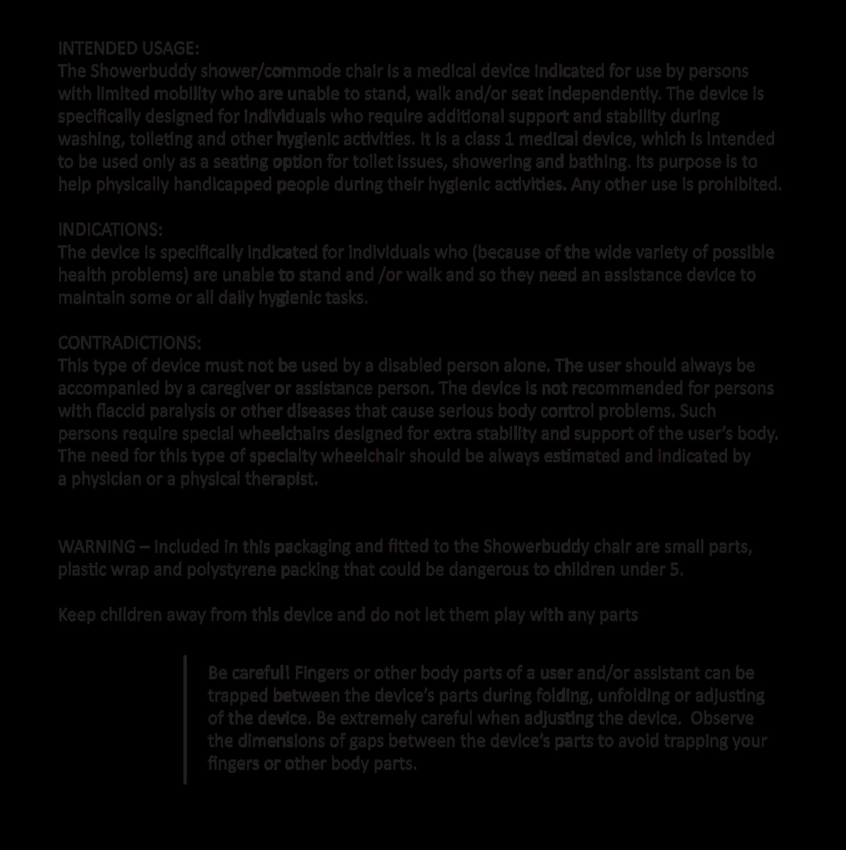 Failure to comply with these safety instructions may result in injury or damage! It is important that the user(s), and/or the caregivers of the user(s), learn how to safely operate the Showerbuddy shower chair.