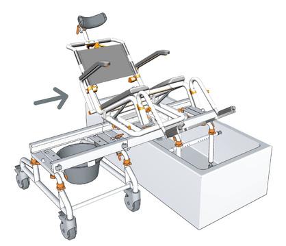 Ensure the chair is transferred all the way onto the bath base and primary brake clicks to secure the chair in position