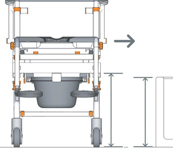 showerchairpositionedonslipperysurfacessincethewheellockscanonlypreventthewheels fromrotating.Itisrecommendedthattransfersbeperformedonclean,drynonslipperysurfaces. Transferring onto a Showerbuddy Shower Chair – always lock all castors in their outward position (front castors positioned in the forward and out position / rear castors positioned to the rearward and out position) for maximum chair stability. Never use the foot rests to assist with transfers. This could cause the chair to tip forward. The footrestsshouldbeswungawayorremovedentirelyduringtransferstoprovideunobstructedaccesstotheshower chair.