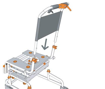 Insert the back rest into the seat base. Slide the back rest into the seat base until the clip pins click into the holes on the seat base.