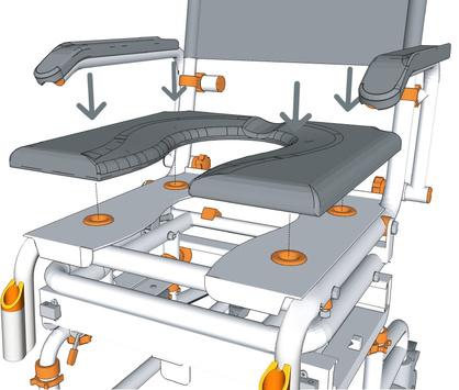 Ensure the commode bucket is pushed in far enough that the brackets securely hold the commode bucket in position. The commode bucket should be centred under the opening in the cushion.