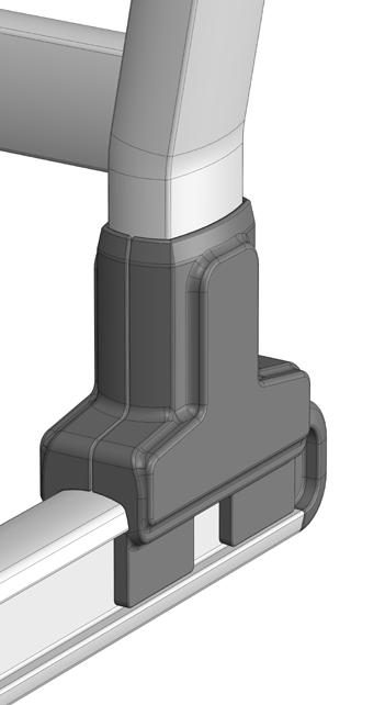 d: Locate leg 4” (100mm) from rail end to allow for grab bar